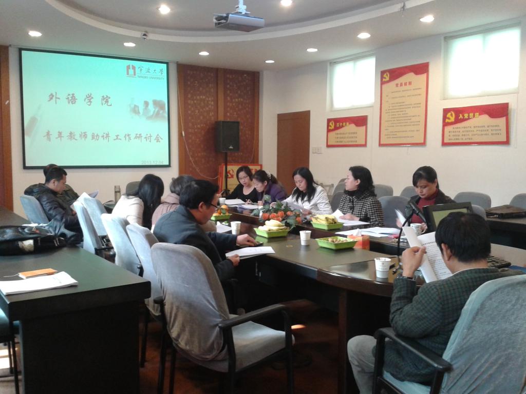 2013年12月4日中午,外语学院教师教学发展部以午餐会的形式召开了青年教师助讲工作研讨会。会议由学院教师教学发展部负责人王红阳副院长主持,2012年12月结对的青年教师及导师参加了会议。会上学院教师教学发展部联络员刘春丽老师解读了《啪啪啦
