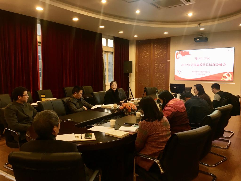 126日下午,外国语学院党委组织召开了2019年党风廉政建设情况分析会,党政班子全体成员、全体党委委员、纪委委员参加会议。会议由学院党委书记方晓春主持。