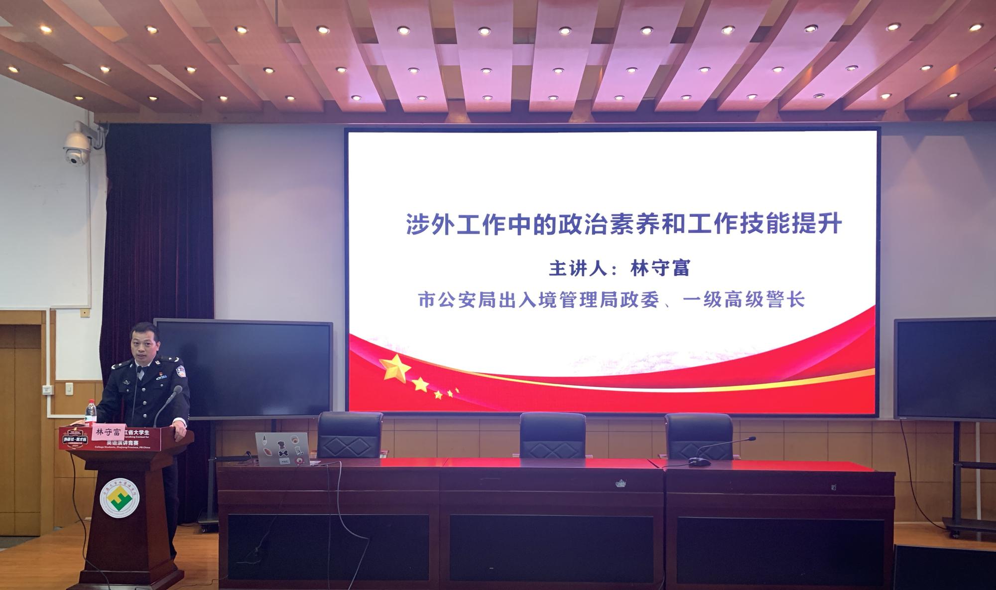 林政委从出入境管理局的工作职责、在校期间的难忘回忆和毕业后的工作经历入手,向学员们娓娓道来他过去27年在国内外从警所经历的真实、生动的故事,展现了从一名外语专业学生成长为出入境管理专家和优秀警官的发展历程。林政委以学长和过来人的身份告诫同学们提高国家安全意识,把生命安全放在首位;勉励大家胸怀梦想、放眼世界、关心时政、努力学习、积极实践;希望大家紧跟时代步伐,常抱敬畏之心,勇担社会责任。党校学员纷纷表示,林政委的党课,语言接地气、内容丰富、内涵深刻,大家深受启发和鼓舞。