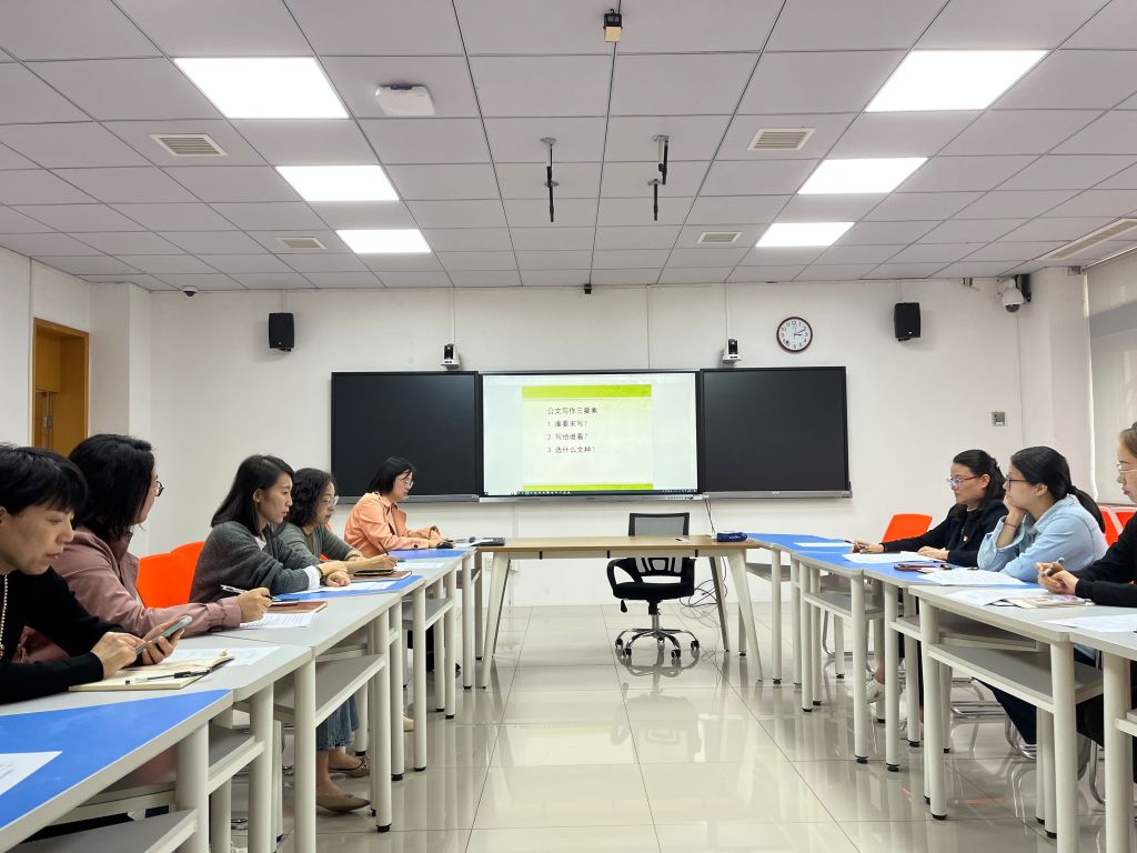 行政教工党支部开展“推进数字化规范化办公,提升管理服务效能”主题党日活动。党(校)办副主任韩波、徐舟萍老师和刘英楠老师应邀出席。本次主题党日活动由行政教工党支部书记梁银英老师主持,行政教工党支部全体成员、教务办主任、学工办辅导员等部门骨干力量参加了本次活动。