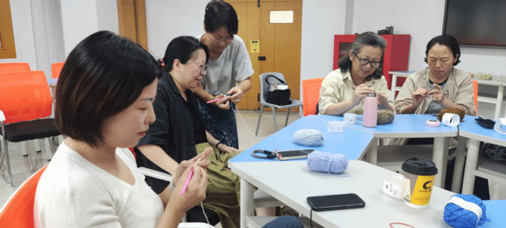 在刘静老师的带领下,大家都非常认真地去完成自己的编织品。此次编织活动不仅共庆了祖国母亲生日,还让大家了解了编织文化,制作出了好看的编织物品,