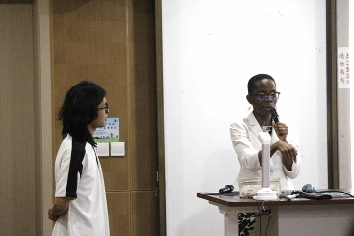 图 3 尼罗博士(右)与主持人别伟老师(左)现场互动。