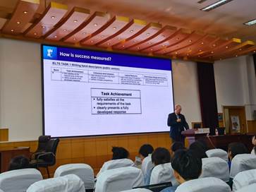 在第一部分“How is success measured”中,Peter老师介绍了外语教学方法、语言理论、学习理论、教师及学习者的角色等方面知识。 Peter老师说道:“Success is not measured by what you know about the language. Success is measured by your ability to use the language.”此外,Peter老师以IELTS考试的要求为例,指出听说读写都需要语言的使用,即“use”。