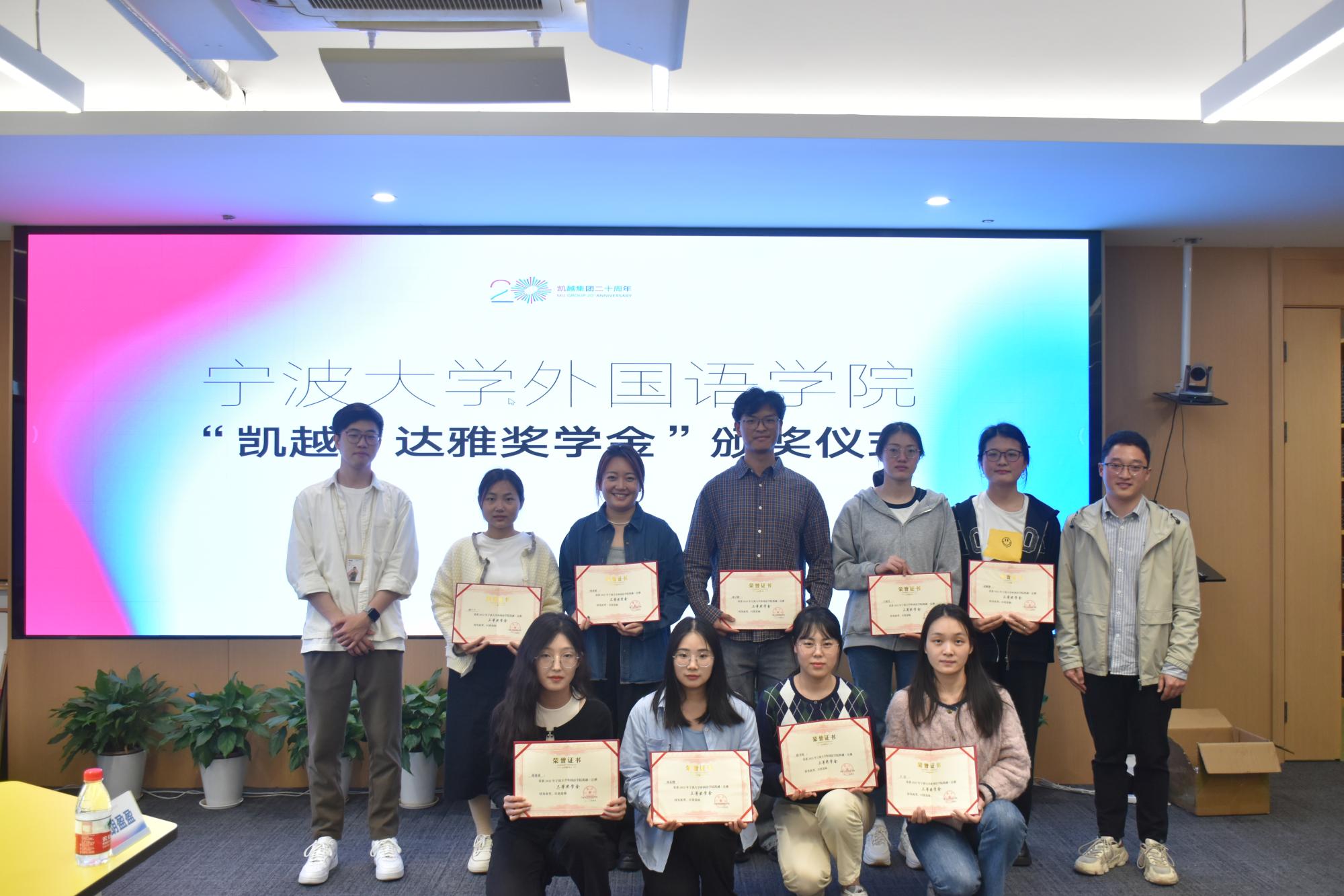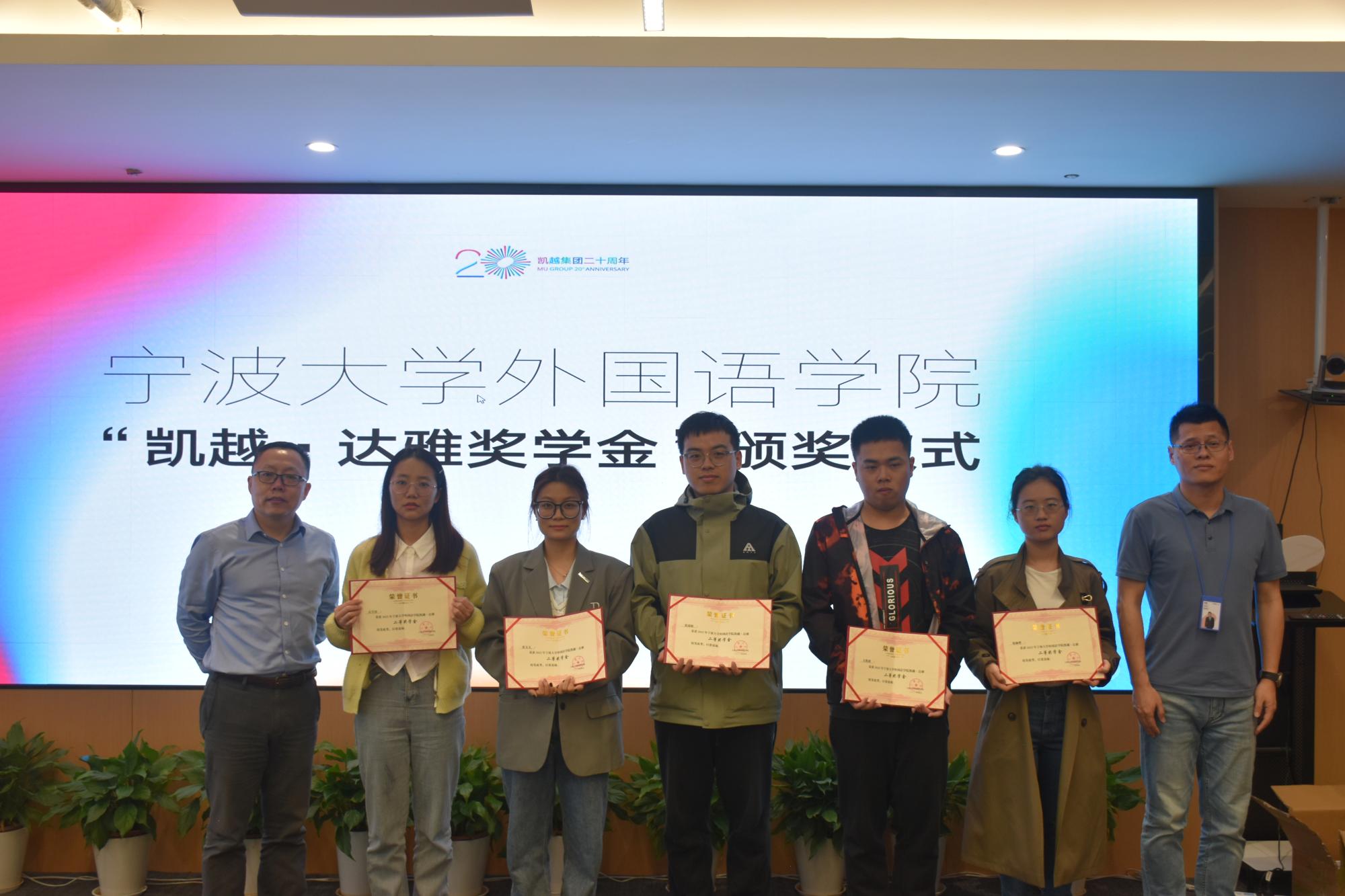 “凯越·达雅奖学金”颁奖仪式上,学院教师和集团代表分别给获奖学子颁发奖状和纪念品,2022年度学院共评选出25名学子获“凯越·达雅”学生干部奖学金。双方也借此机会商谈以就业为导向的人才培养方案制定事宜,搭建学院学生与凯越集团的毕业实习合作框架,进一步推动毕业生就业工作。