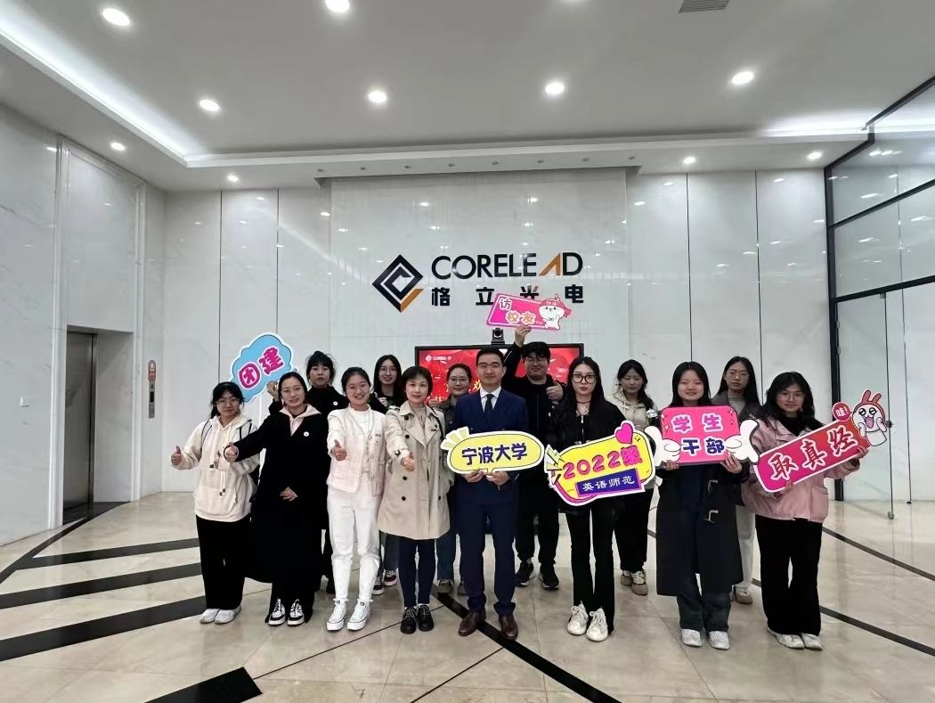 2022级英语(师范)班班主任梁虹、2022级英语(师范)班学生代表等十余人赴校友企业宁波格立光电科技有限公司。啪啪啦