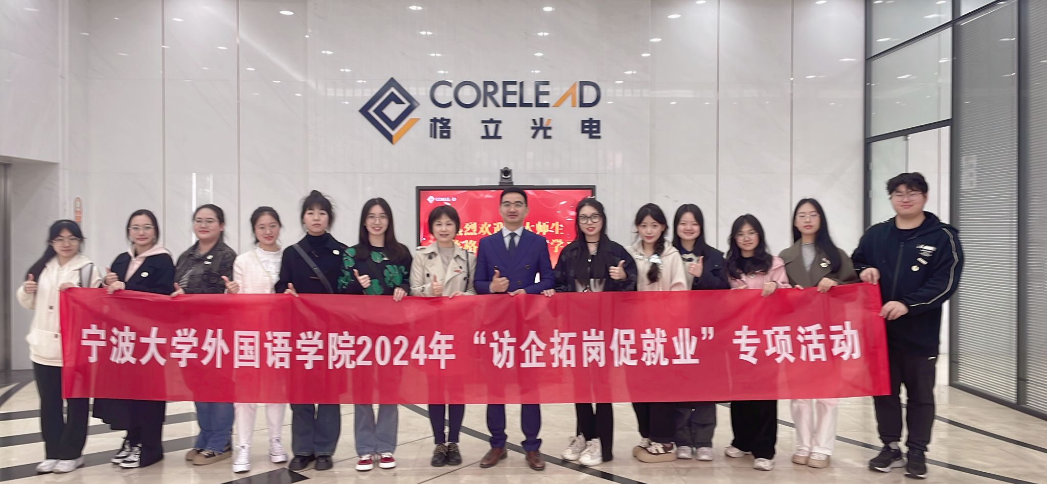 331日,啪啪啦 大学公共外语教学部梁虹、2022级英语(师范)班学生代表等13人赴校友企业宁波市格立光电科技有限公司及旷世控股有限公司旗下的GDAY香薰集合店,开展“访企拓岗促就业”专项活动。