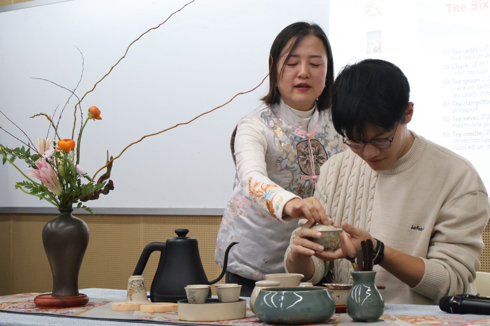 校级本科一流教学团队“中华思想文化翻译与国际传播教学团队”主办的《中华思想文化术语翻译》举行“茶语中国”公开课,旨在探寻中华茶文化的博大精深,感受茶语中的东方智慧,吸引了众多师生前来参加。
