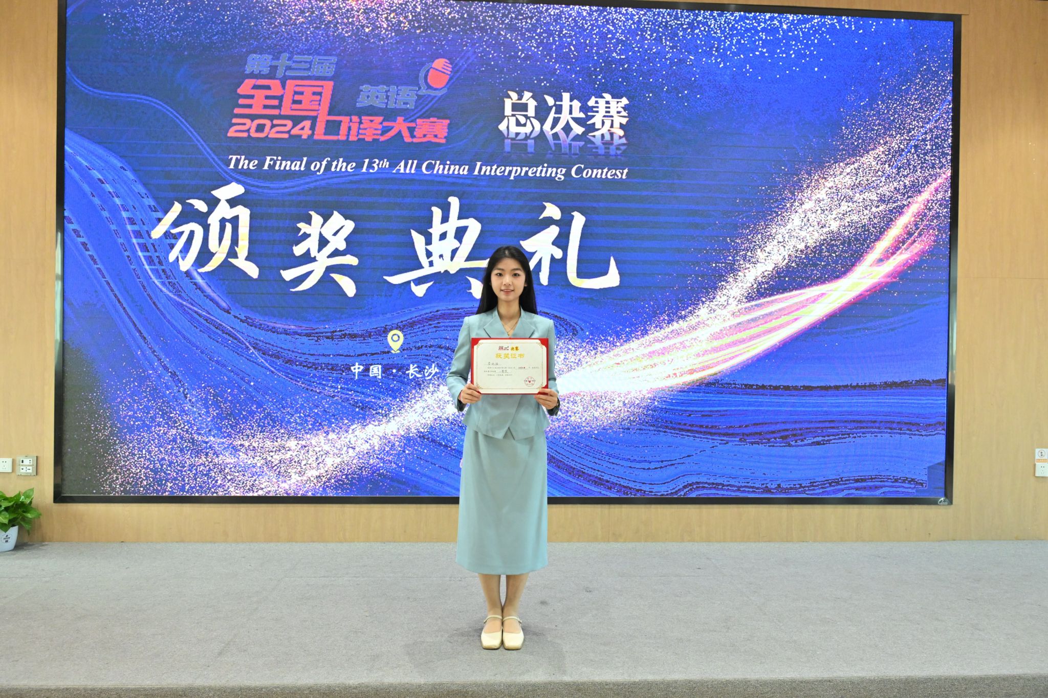 外院学子凭借扎实的专业技能,在竞争激烈的高规格赛事中脱颖而出,实属不易。其中,李昕怡、马杨倩两位同学过关斩将,进入第十三届全国口译大赛全国总决赛,最终斩获交传组全国一等奖。