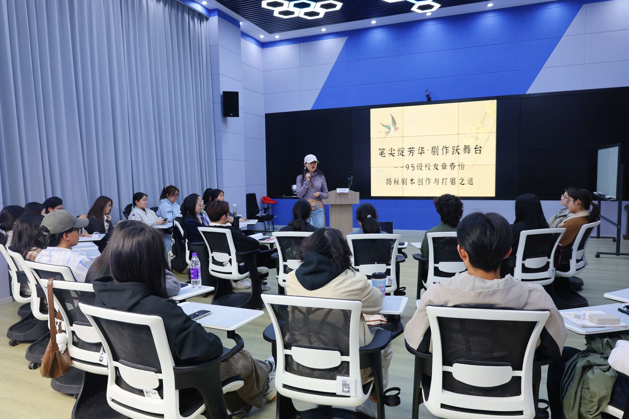95级校友、知名作家章春怡围绕“如何写好原创剧本”主题开展专题讲座,学院各班级负责人、社团负责人等参与。