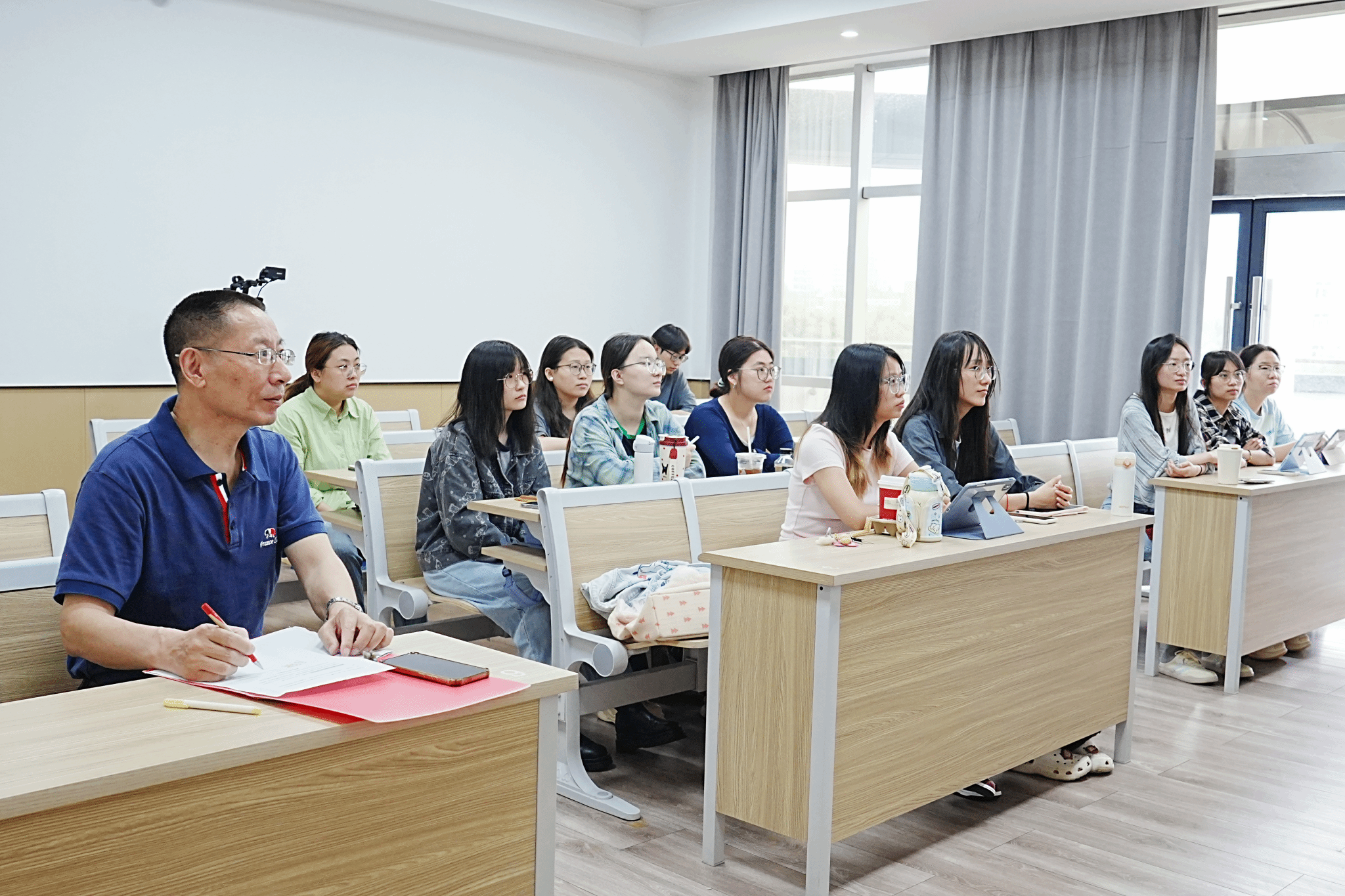 在叶耀珍楼304教室成功举办了“校外导师进课堂”行业指导讲座。本次讲座以“日语学习的方法与翻译实践”为主题,特邀宁波爱心日本语学校校长、资深日语翻译专家马光超老师担任主讲嘉宾。日语笔译硕士专业师生积极参加了此次讲座,现场反响热烈。