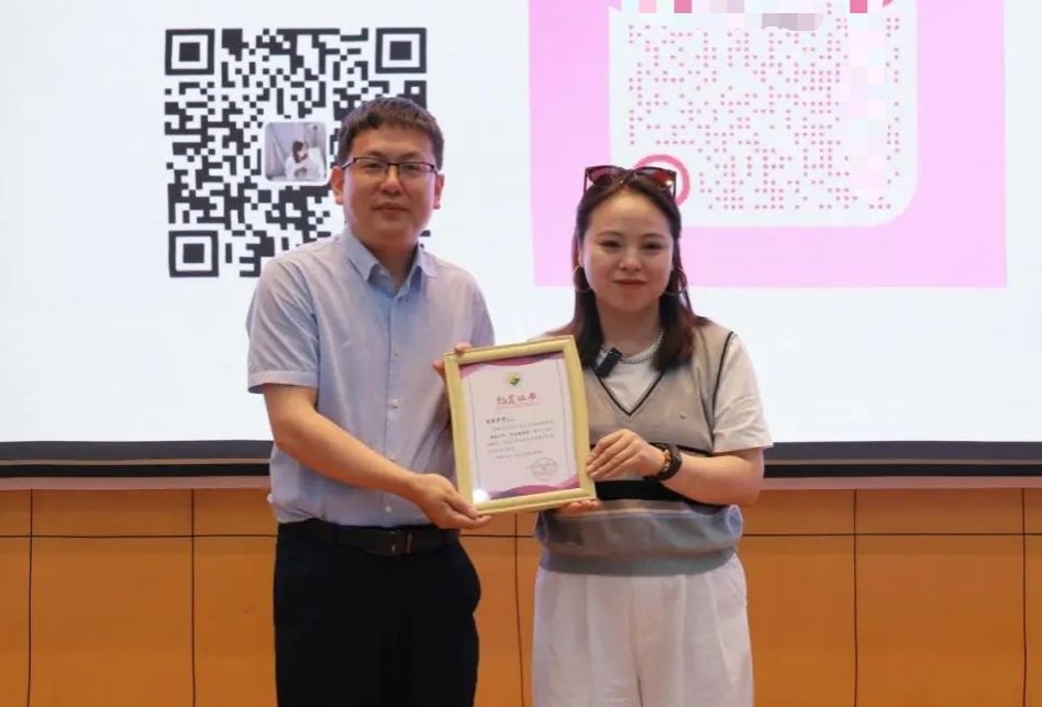 学生工作负责人冯能跃老师在讲座结束后为林夏萨摩校友颁发纪念证书,感谢林夏萨摩校友担任啪啪啦