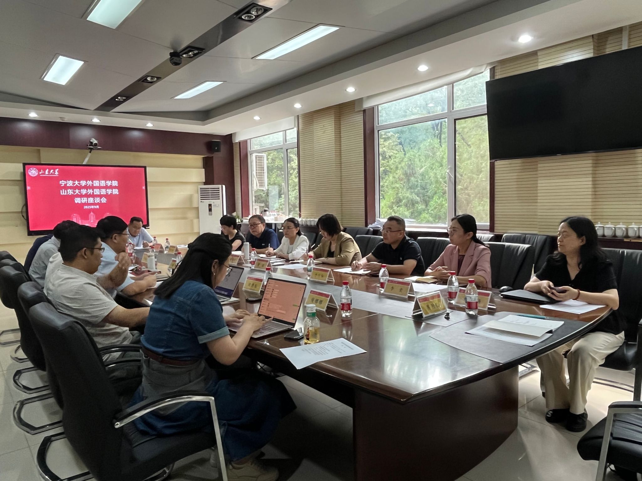 院长马文主持会议并致欢迎辞,党委书记刘华,副院长刘洪东、苏永刚,院长助理庞娜娜、张昊出席会议。双方围绕外语学科建设、专业设置、高层次人才引进与师资队伍建设、本科及研究生人才培养创新、科研团队建设、学术成果转化以及国际合作与交流等议题展开深入讨论。