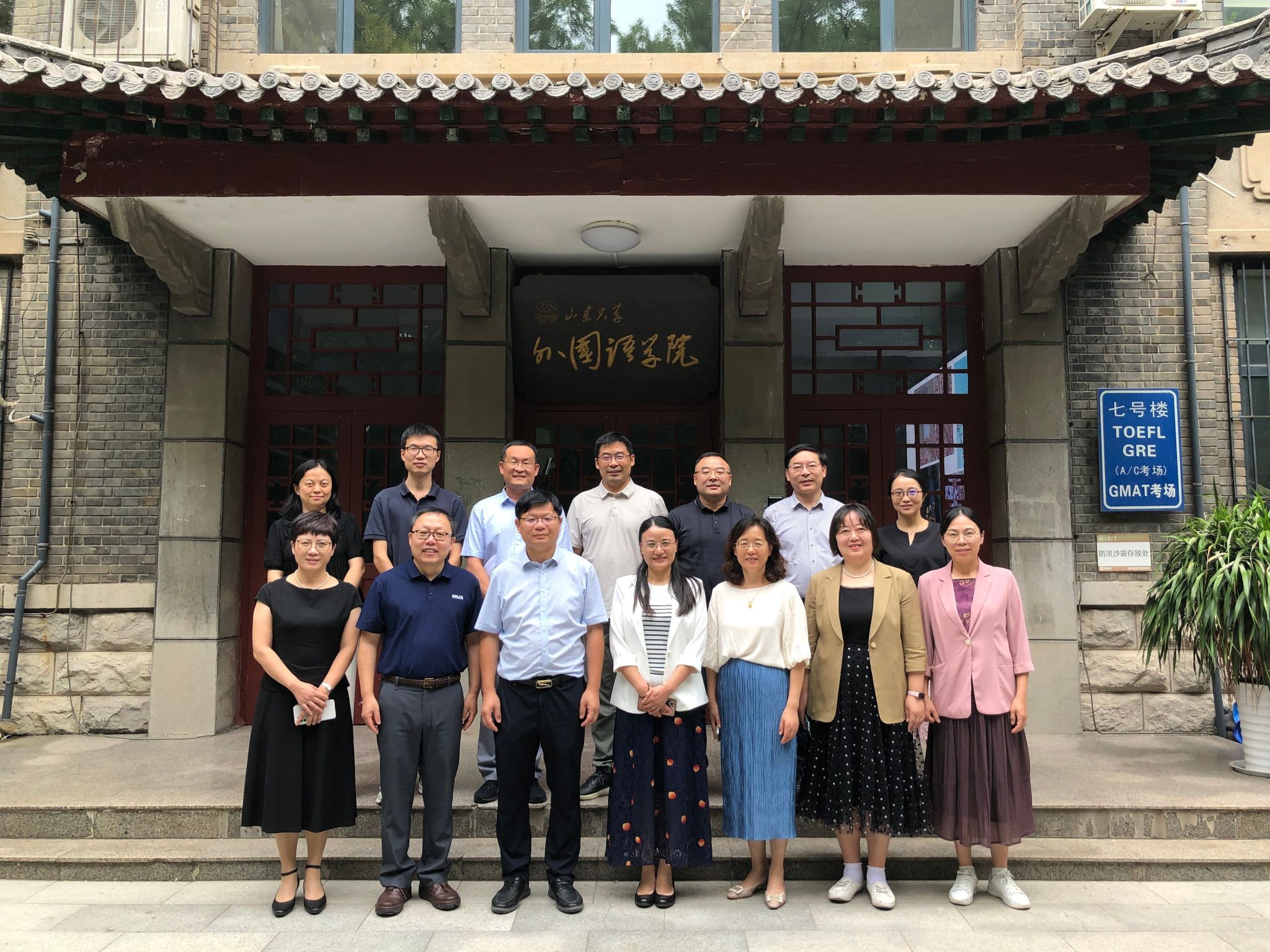 进行调研交流,并参加山东大学主办的“国际组织、国际传播、国别区域、涉外法治”(简称“三国一外”)高层次复合型涉外人才培养研讨会。英语系主任李昌标,学院督导主任余玲丽,MTI教育中心主任丛迎旭,英语系副主任李奕、宋蔚,德语系副主任蔡玳燕,日语系副主任黄利斌参加调研交流。