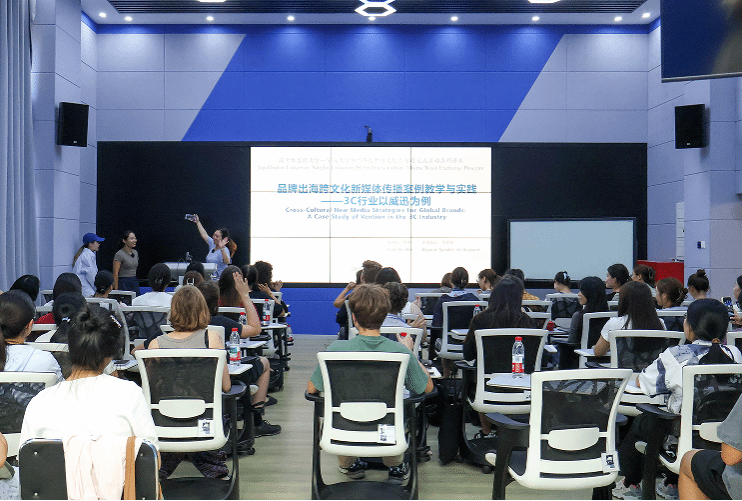 活动紧扣数字经济与跨境传播主题,依托研究生创新课程平台,特邀知名跨境电商讲师、社交媒体达人贺晓雯作主旨分享。她结合自身在直播、短视频拍摄及个人IP打造领域的丰富经验,通过实际案例深入解析了跨境电商在国际品牌传播中的关键作用,通过实际案例演示短视频创作与海外营销策略,生动阐释如何以文化适配的方式推动中国品牌走向世界。