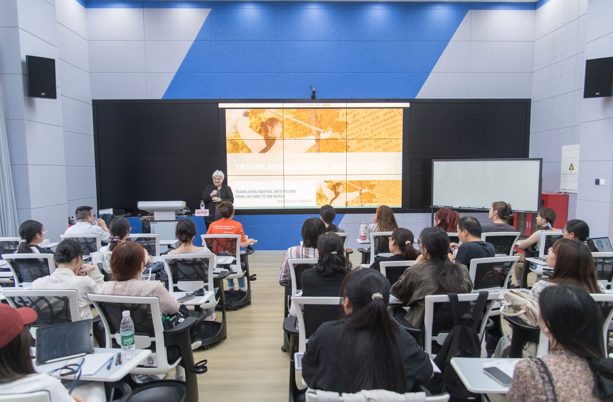 特邀美籍著名文学翻译家、作家白雪丽(Shelly E. Bryant)女士,举办题为“Translating Martial Arts Fiction – From Jin Yong to the World(武侠小说翻译——从金庸走向世界)”的专题讲座。讲座由徐赛颖副教授主持,吸引了众多师生积极参与。