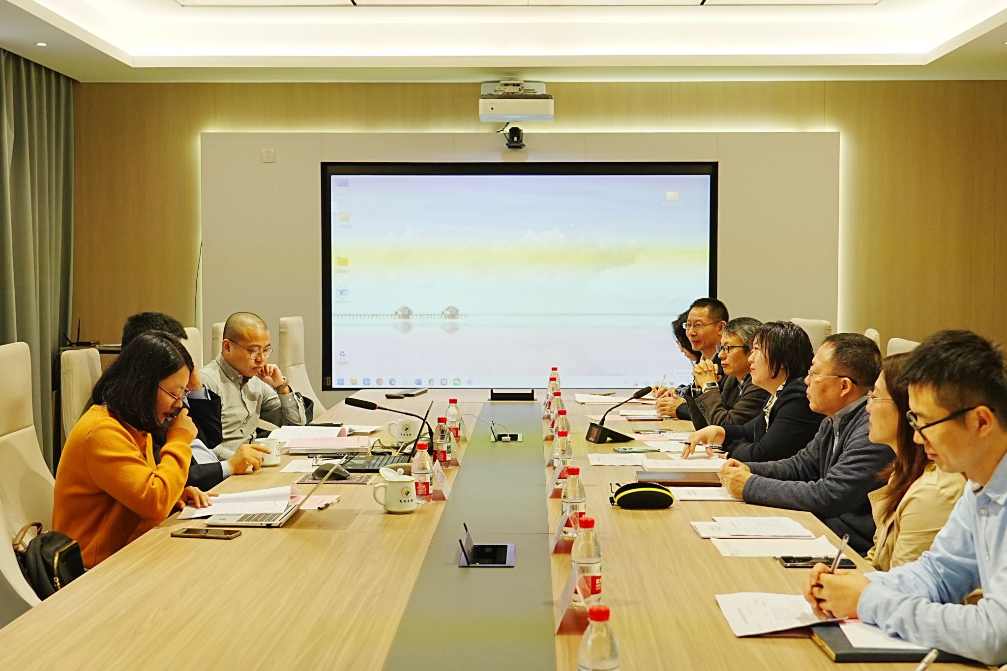 副院长贺莺教授就学院在学科建设方面的探索与实践作了专题汇报。她重点介绍了学院在跨学科交叉、产教融合平台搭建等方面取得的成果,包括共建省级重点培育智库、与中国外文局等机构合作建设实践基地、开发特色课程与教材、助力宁波城市国际传播等。贺莺副院长表示,学院已积累了一定的项目、论文、实践案例和影响力,未来将进一步整合资源,突出产教融合思路,强化特色,补齐短板,为未来的学位点申报与建设夯实基础。