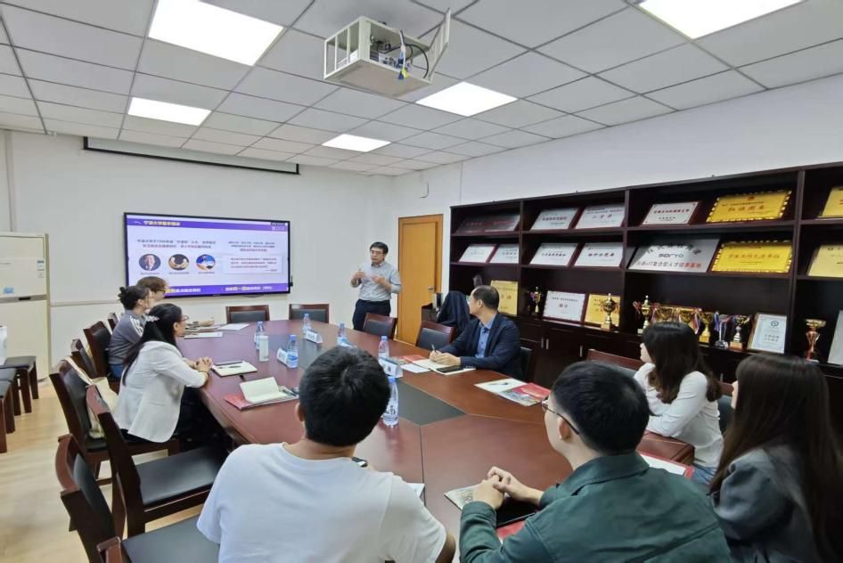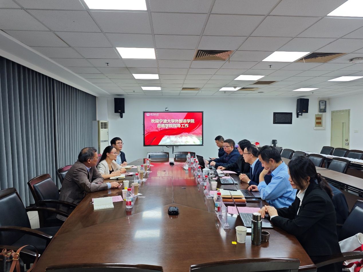 ,院长许明武、党委书记王小月、副院长刘泽华、谭渊、李菁及党委办公室主任高峰热情接待了调研团队。许明武院长围绕外语学科高质量建设、跨学科交叉融合发展路径,以及AI时代“外语+”复合型人才培养体系构建等核心议题,分享了宝贵实践经验;双方还就师资队伍梯队建设、青年教师成长支持、科研创新团队培育及产教深度融合等关键领域,展开了坦诚深入的交流探讨,达成多项共识。