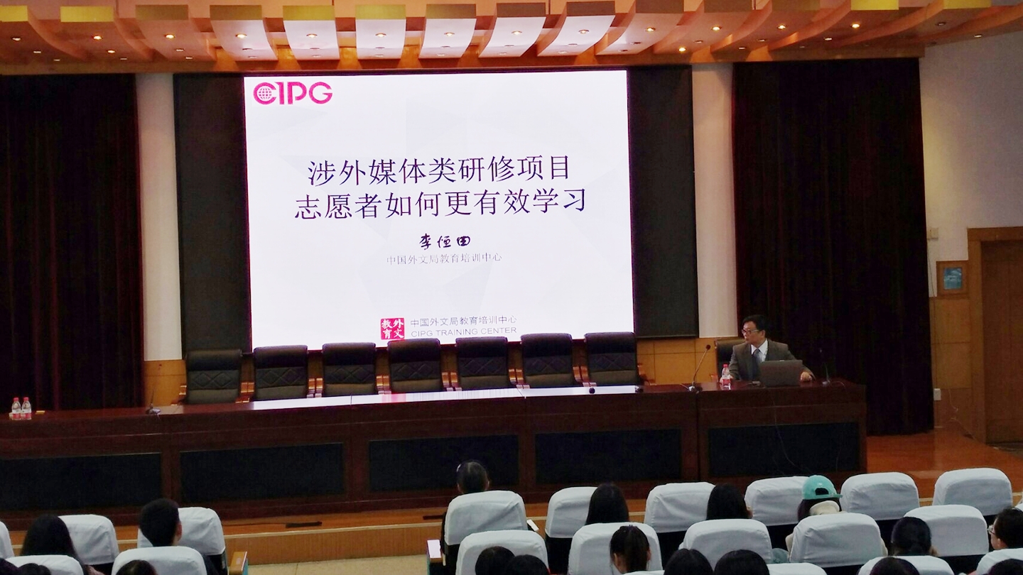 讲座题为“涉外媒体类研修项目志愿者如何更有效学习”,涉及外事规范、翻译、外宣和自我意识与定位等四个方面,李教授结合多年外宣工作和涉外高端培训管理经验,从国家外宣和国家民族利益高度并结合丰富生动实例,精准剖析了涉外工作中的素质要求、困难挑战与对策准备,指出翻译志愿者尤其在政府层面涉外媒体类高端研究项目中如何体现和培养外宣意识和大局意识,充分认识国际舆论斗争的尖锐性和复杂性,切实结合党和国家的根本利益,站在民族未来的高度,坚持不懈地学习。