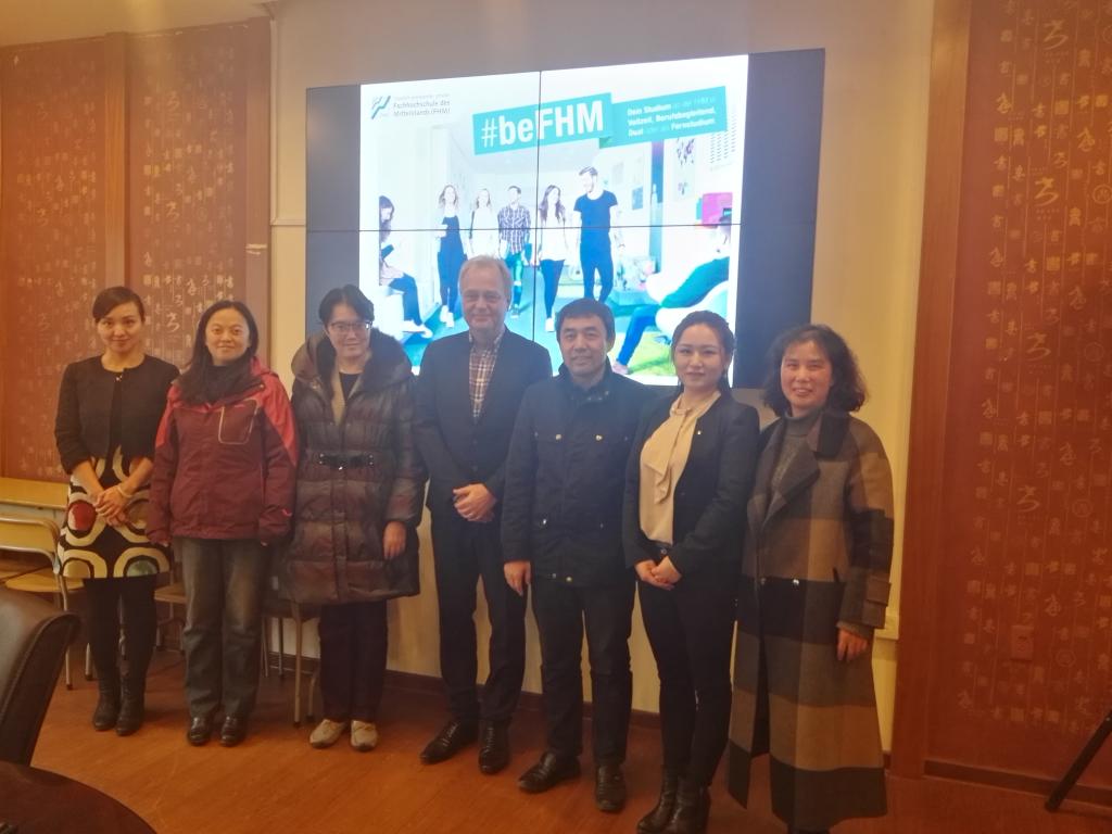 德语专业与德国中等企业应用技术大学的“国际企业管理”和“工商管理 创新与领导力”专业合作进行了探讨。宾主双方就本科及硕士联合培养项目进行会谈,就双方的培养模式与课程设置进行了对接,探讨了学分顶替方案。双方在轻松、友好的氛围中达成共识。洽谈会后,德国中等企业应用技术大学副校长对啪啪啦