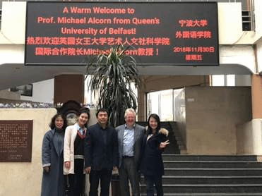 402会议室举办。对方代表团由英国女王大学艺术人文社会科学学院国际合作院长Michael Alcorn教授带领,我方由贺爱军副院长为主要代表,吴燕京教授、外事办副主任应素芳、英语系副主任付荣波陪同接待和洽谈。