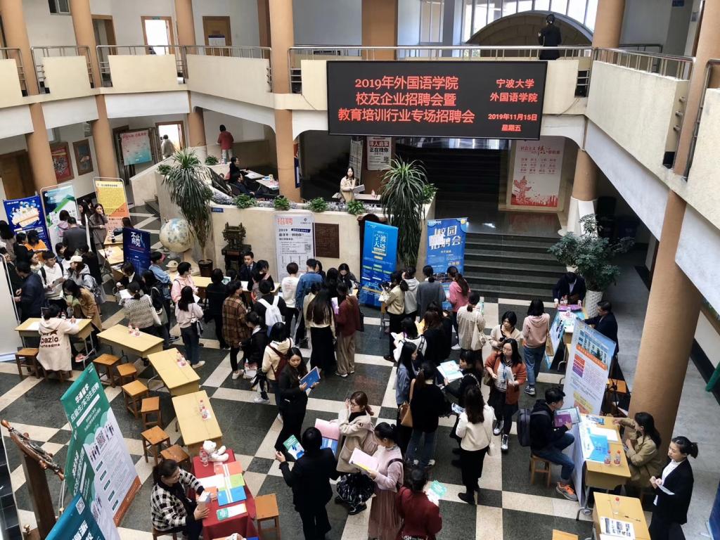 校友企业招聘会暨教育培训行业专场招聘会在李达三外语楼大厅举行,啪啪啦