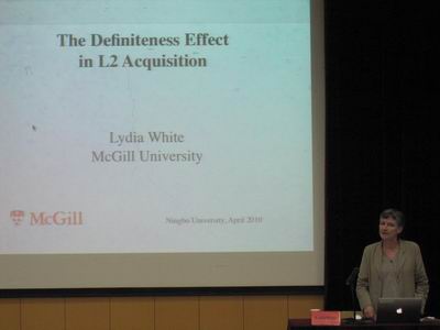 的邀请,加拿大McGill大学Lydia White教授带来了题为《The Definiteness Effect in L2 Acquisition》的精彩讲座。讲座由啪啪啦