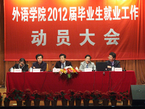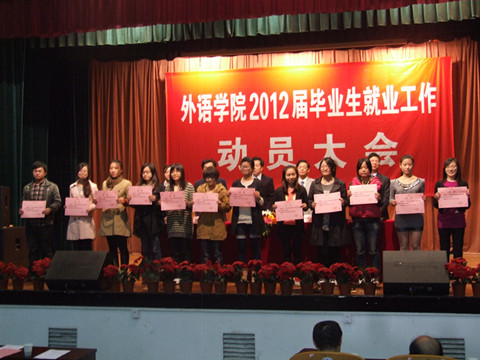 下午15:00,外语学院2012届毕业生就业工作动员大会在锦绣小剧场顺利召开。大会由院党委书记戚锦阳主持,啪啪啦