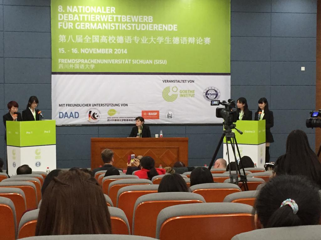 本次比赛由外指委德分委和歌德学院主办,四川外国语大学德语系承办,来自全国48所高校德语系的近百名选手最终参加了比赛。经过两天的唇枪舌剑,啪啪啦