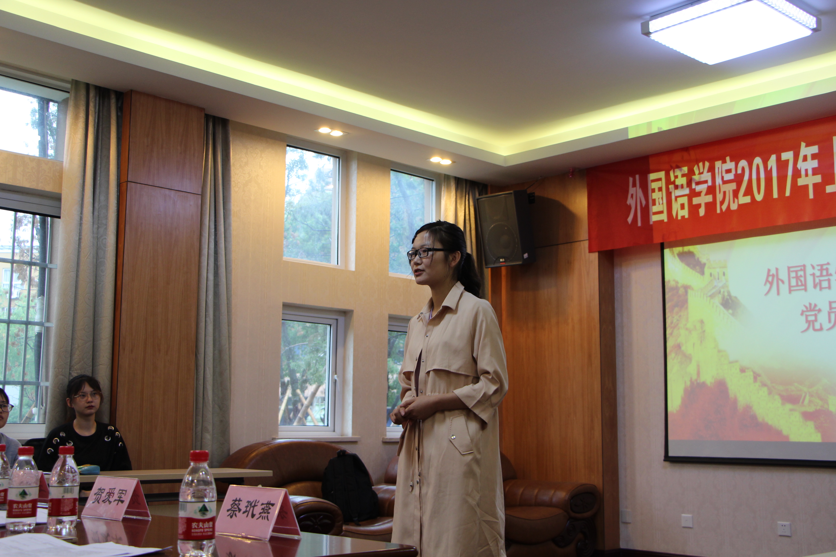 “锋领行动”系列活动之2017年上半年重点对象公开答辩在学院附楼107会议室举行,学院党委委员副院长贺爱军,党委副书记王智腾,党委委员、院长助理刘路平,党委委员、德语系副主任蔡玳燕担任答辩会评审。