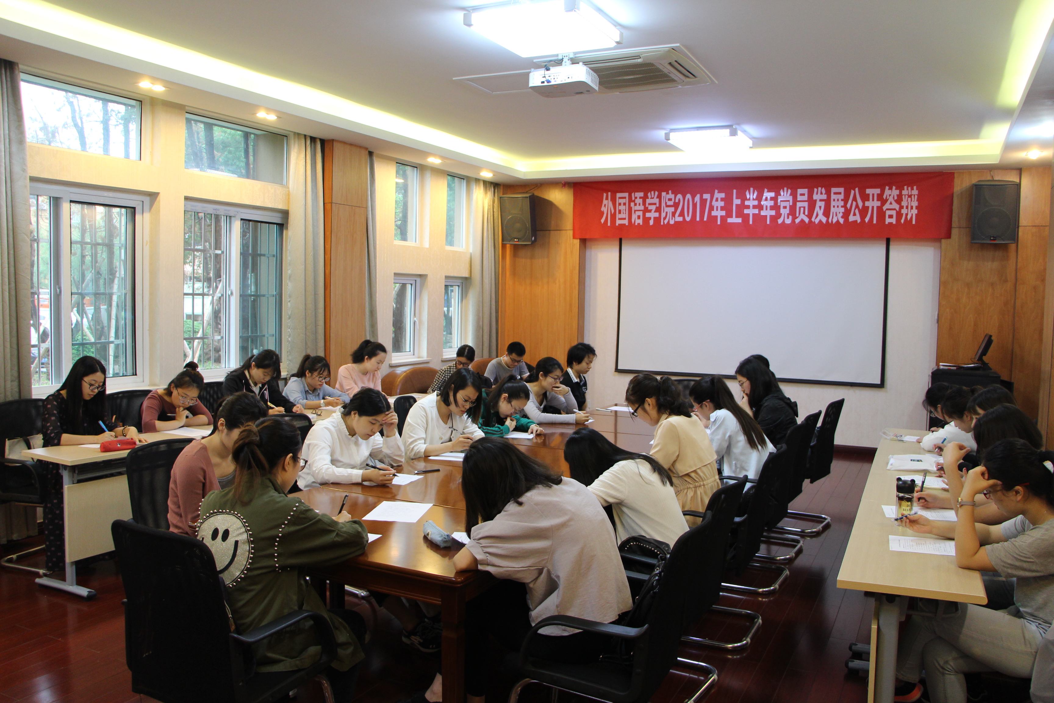 为更加规范党员发展流程,提高发展党员质量,本次重点发展对象的确定分为笔试和答辩两部分进行。笔试试题主要就党的基本知识以及当前时事政治进行考察。答辩则综合考量同学们个人素质和能力。在答辩过程中,同学们从自己的入党动机以及平时工作、学习、生活等各方面的表现进行展示,表达了想成为一名预备党员的强烈愿望。答辩的同学或参加各类学科竞赛,或参与到各类志愿服务活动中,或结合“两学一做”专题教育谈学习体会,或以身边的优秀教工党员、学生党员为榜样谈努力方向,都展现出了积极进取、努力争优的精神风貌。