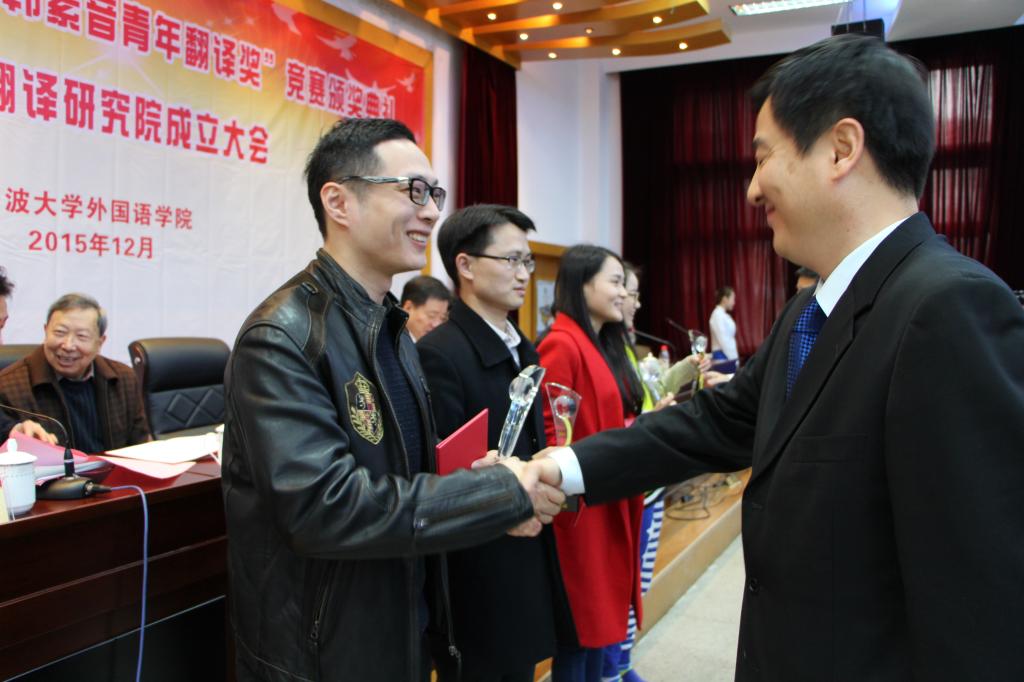 党委书记郭华巍,中国外文局国际合作部主任、中国译协常务副秘书长姜永刚,《中国翻译》杂志副主编、中国翻译协会翻译理论与翻译教学委员会副主任兼秘书长杨平,宁波市外事办公室副主任陈国苗,国务院学位委员会“外国语言文学”学科评议组成员、广东外语外贸大学教授、博士生导师,珠江学者特聘教授黄忠廉,中国资深翻译理论家方梦之,新加坡南洋理工大学教授谭慧敏等出席颁奖典礼。本届大赛评审委员会的部分专家、学者、大赛获奖选手和相关代表参加典礼。典礼由啪啪啦