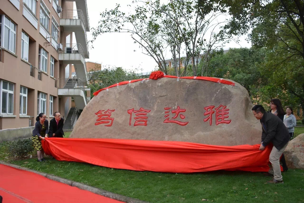 “笃信达雅”院训石揭幕仪式在学院小广场举行。学院领导班子成员、原外语系系主任胡荣昌、原外语系退休教师冯韵芳、各届校友代表以及学院师生代表参加揭幕仪式。院长屠国元致辞,介绍“笃信达雅”院训的来历和寓意并对捐赠院训石的学院1992级英语全体校友表示感谢;学院党委书记段汉武介绍了院训石捐赠过程;1992级英语校友胡英杰代表全体校友发言;最后屠院长、段书记以及两名92级英语的校友代表为“笃信达雅”院训石揭幕,并在院训石前合影留念。