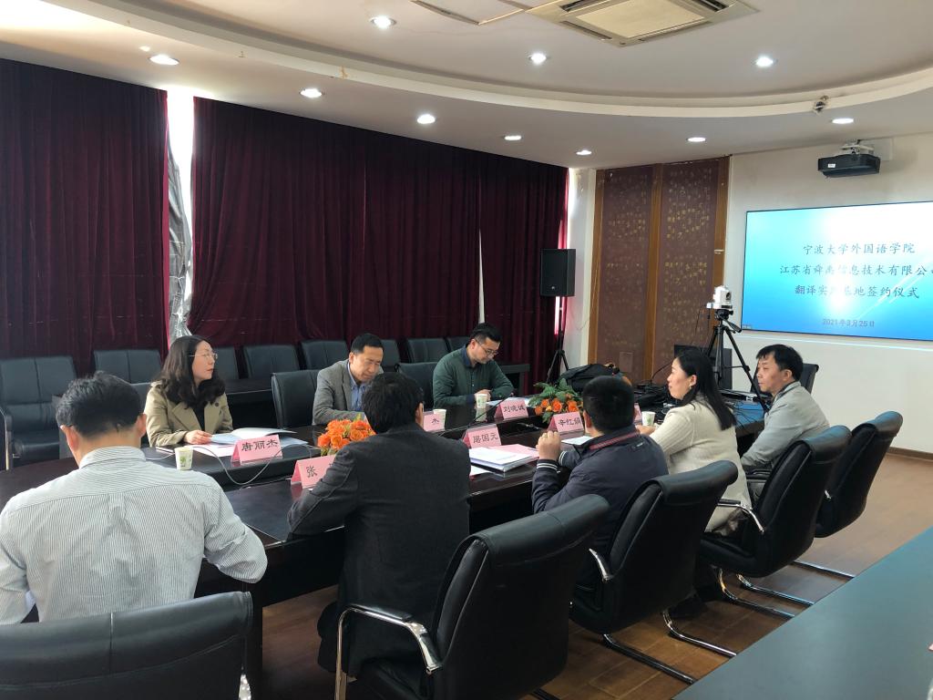 翻译教学实践基地。舜禹信息技术公司总经理单杰、环球通运营总监和人力资源经理,啪啪啦