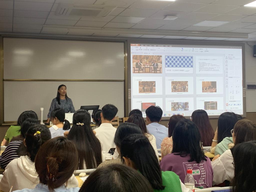 —宁波市外事翻译中心“外事翻译实战课”活动顺利举行。此次活动由外事中心代表就外事翻译工作与外语学习等内容与同学们进行分享交流,模拟实战,旨在推动外语专业学生对外事翻译工作的了解和更深度的参与。宁波市外事翻译中心副主任汪玉琼,宁波市外事翻译中心全体翻译,啪啪啦