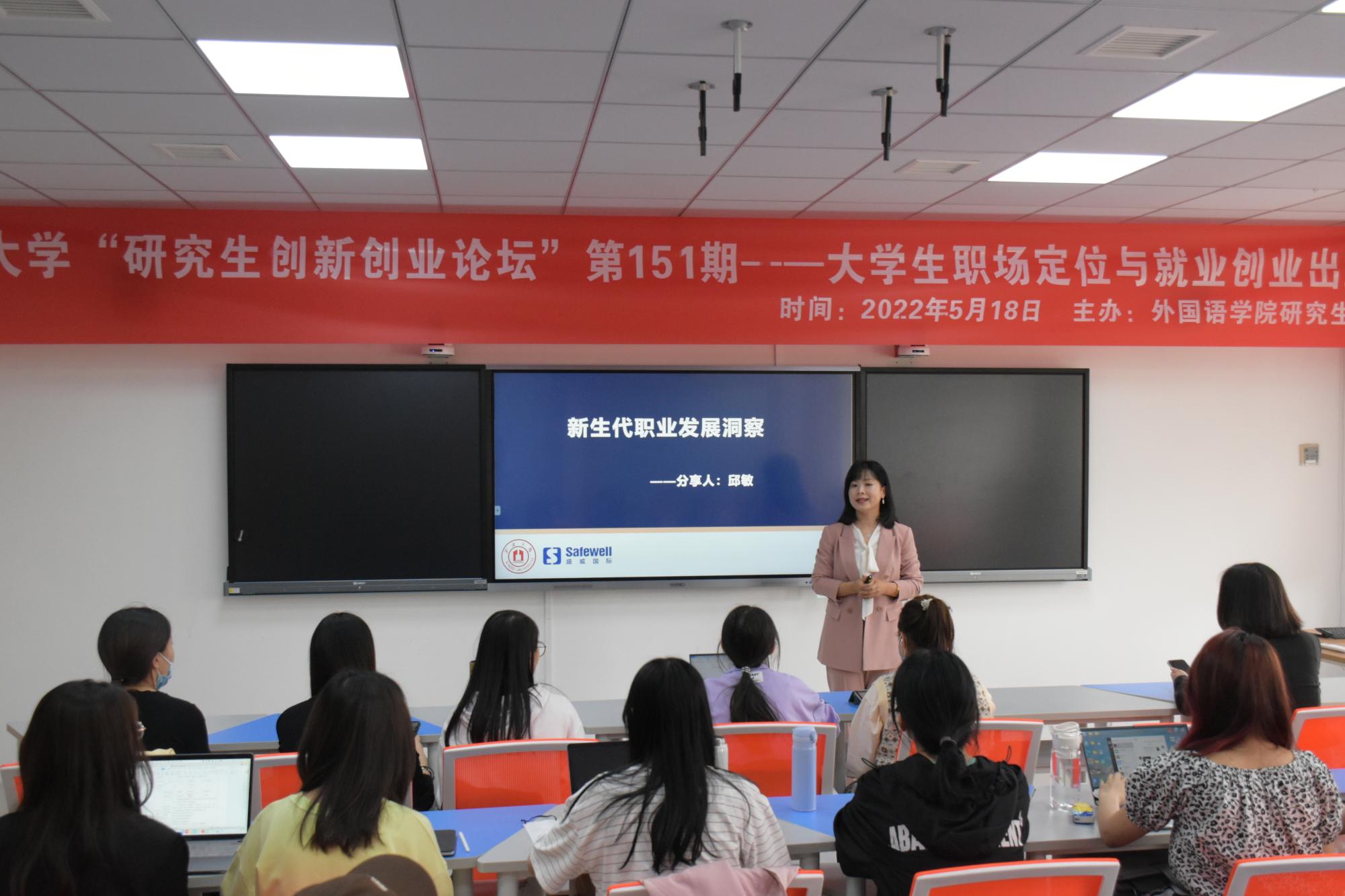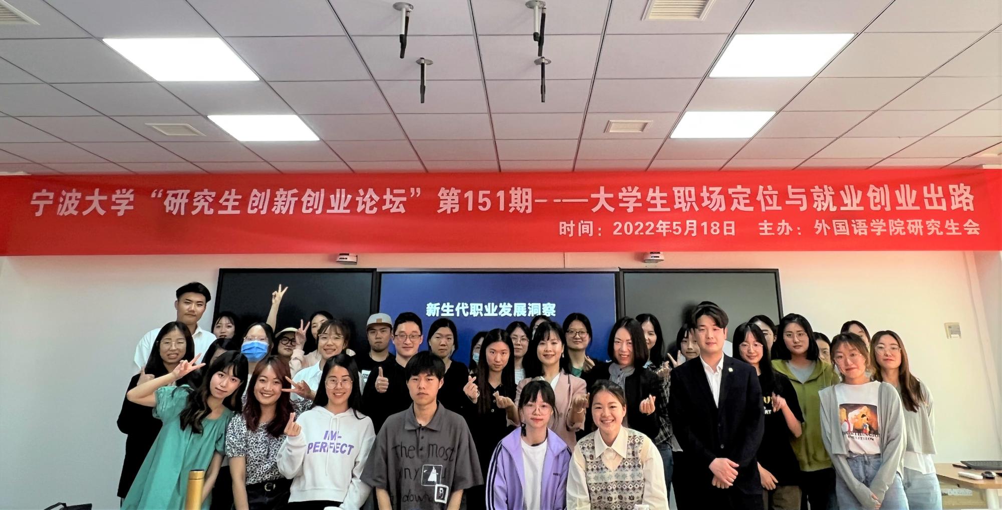 研究生创新创业讲坛第151讲——大学生职场定位与就业创业出路在李达三外语楼309教室精彩开讲,盛威国际副总裁兼人力资源总监、宁波市就业导师、啪啪啦
