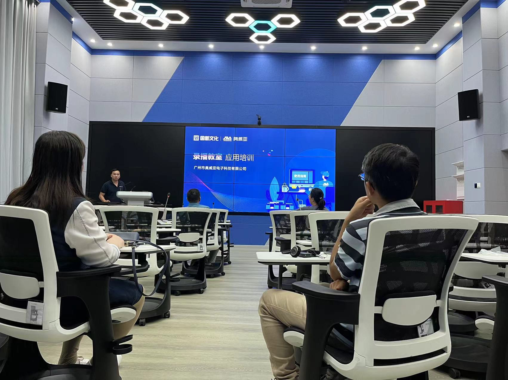 在多语种虚拟仿真实验室举行了会议式同传系统及虚拟仿真录播系统的使用培训,帮助师生通过搭建外语虚拟仿真场景更好地进行外语学习和交流。