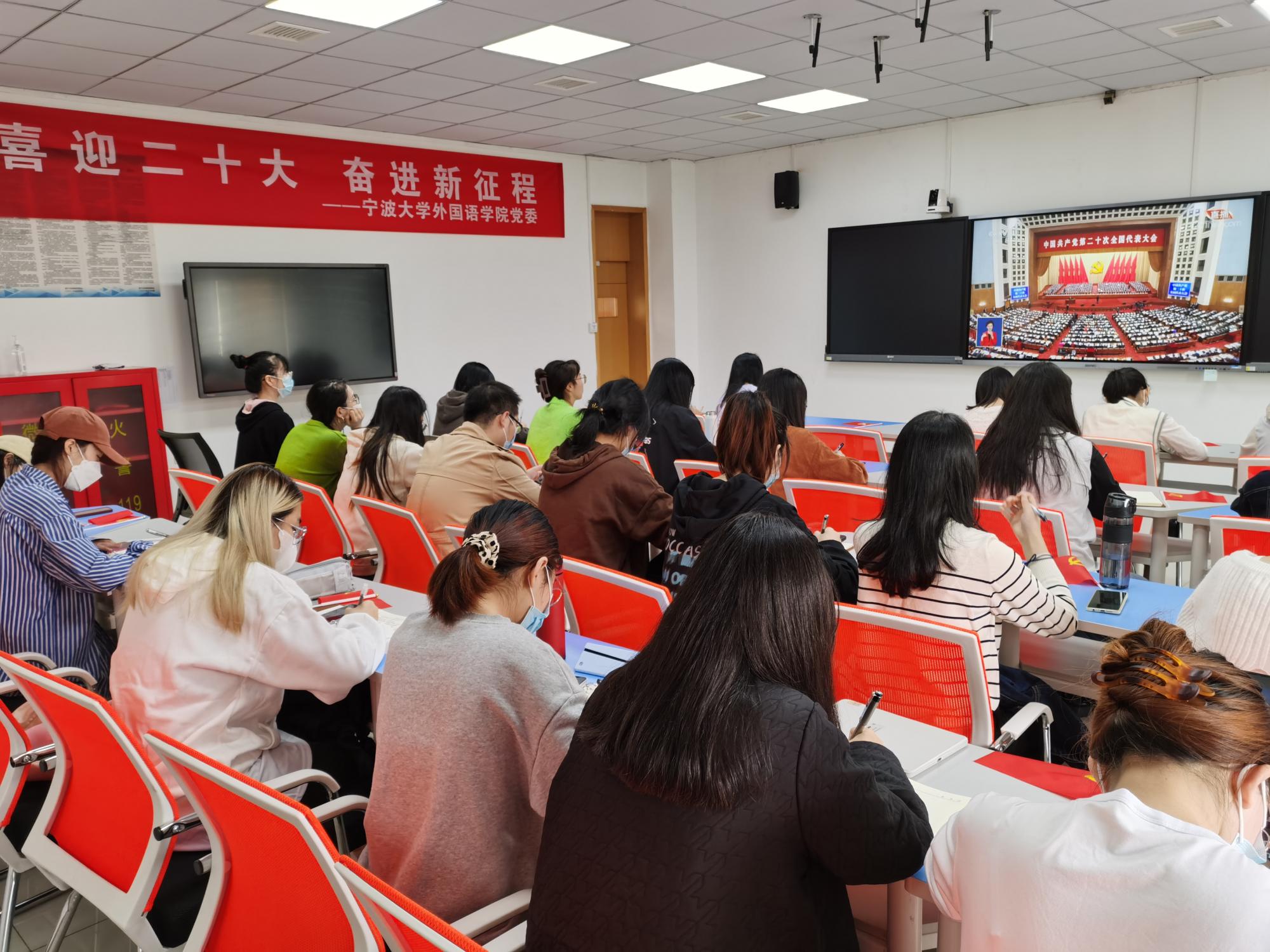 学院党委副书记、纪委书记 胡佳:今天,我与学院200多名师生党员和团员青年们一起集中收看了党的二十大开幕会盛况,认真聆听了习近平总书记的报告。报告中不断出现的提振人心的金句、引人关注的提法,让我们一次次为之感动、备受激励。过去十年,党领导中国取得的历史性成就,我们每个人都感同身受;新的伟大征程上,以中国式现代化推进中华民族伟大复兴的光明前景更让我们坚定信心、踔厉奋发。作为高校基层党建和思政工作者,我们将认真学习贯彻党的二十大精神,坚守为党育人为国育才的初心使命,聚焦立德树人,守好“红色根脉”,进一步打造专业度更强、辨识度更高的党建引领思政育人体系和品牌,为培塑具有深厚家国情怀、广阔国际视野、扎实专业能力和跨文化交流能力的新时代外语人贡献力量。