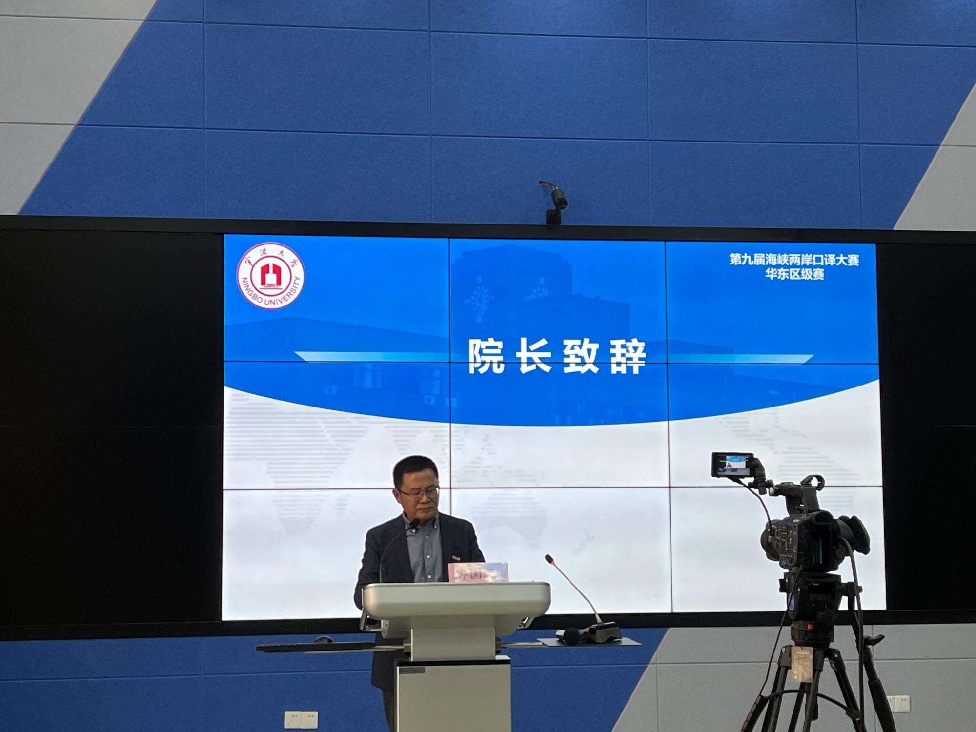 发展情况。他指出,海峡两岸口译大赛自创始以来始终与国家发展、国家战略紧密结合,如今已成为具有重要影响力的国家级品牌外语学科赛事。同时,他高度肯定了这一赛事在促进口译教育及口译人才培养方面的重要作用,并预祝第九届海峡两岸口译大赛华东区级赛取得圆满成功。