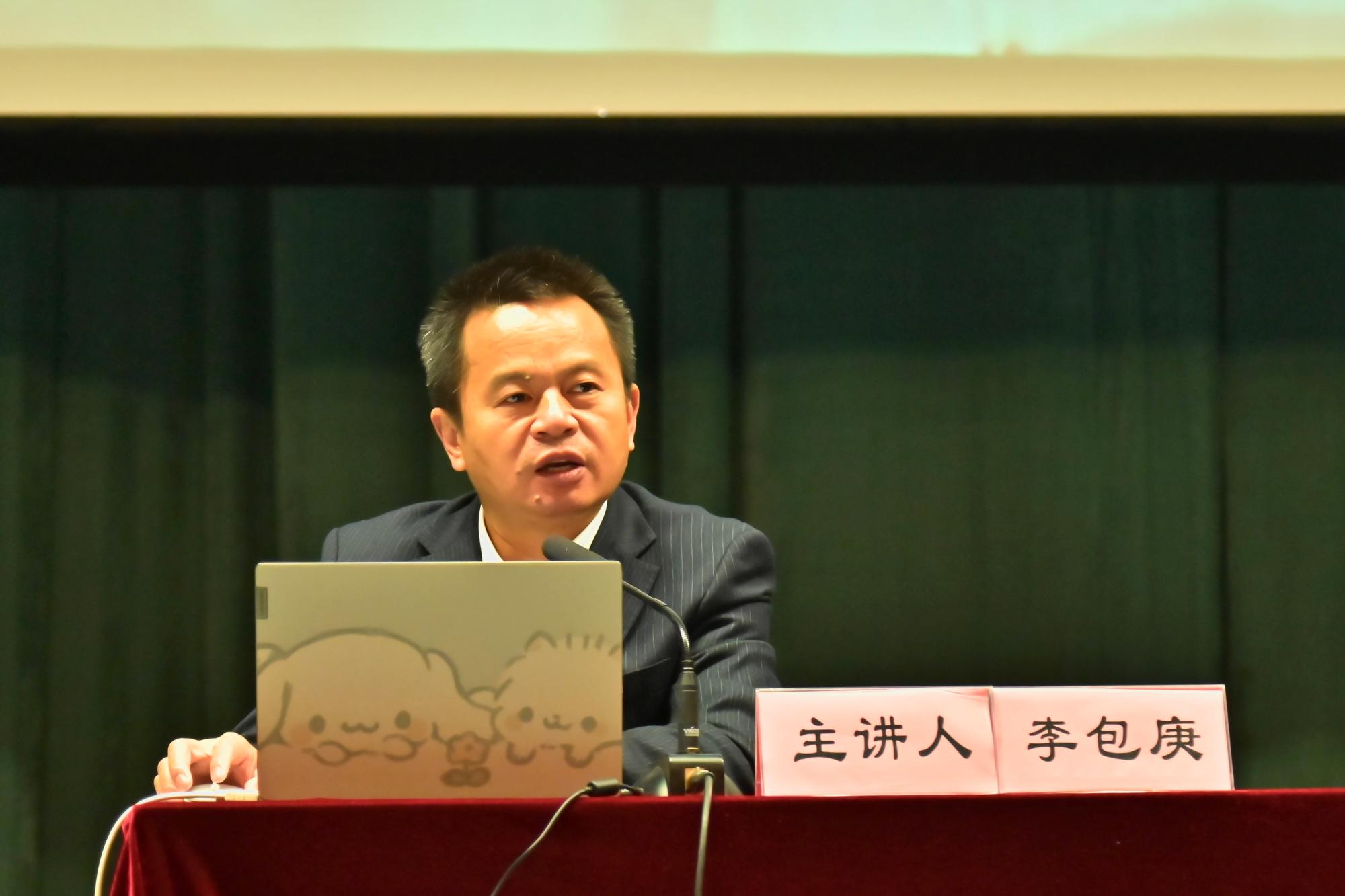师生学习宣传贯彻党的二十大精神专题学习会暨2022年下半年形势与政策课在林杏琴礼堂开讲。马克思主义学院院长李包庚教授做了题为“以中国式现代化扎实推进共同富裕——深入学习贯彻党的二十大精神”的专题报告。讲座由学院党委负责人主持,学院党政负责人、学生工作负责人和八百余名师生参加讲座。
