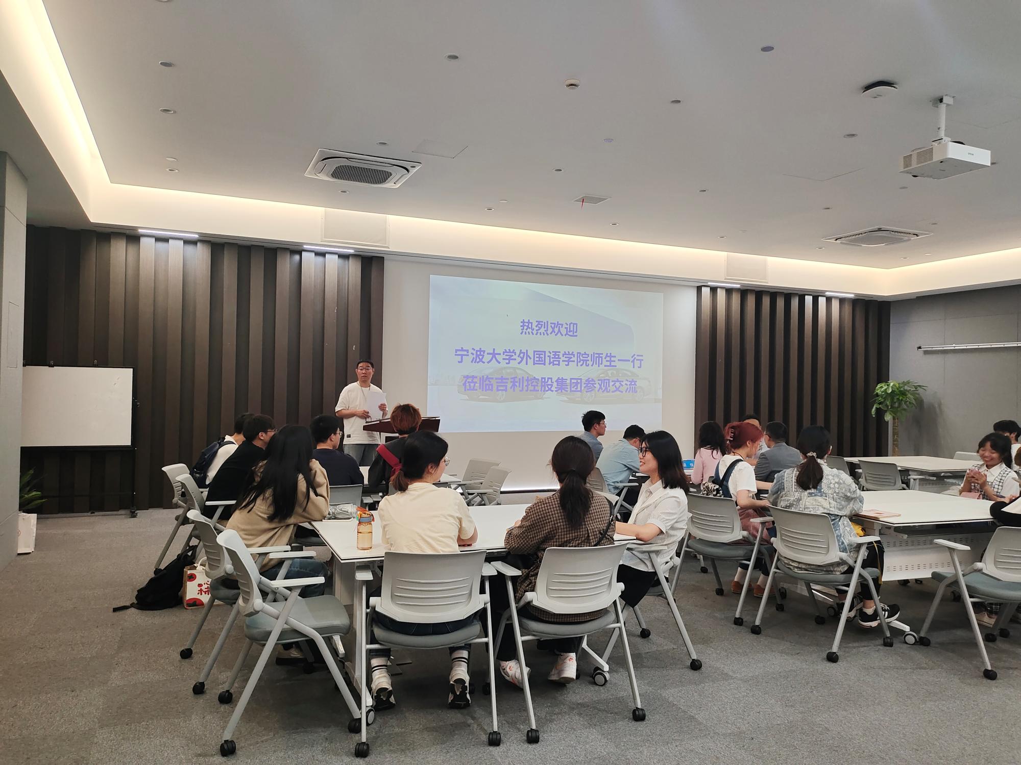 师生赴浙江吉利控股集团走访交流。学院副院长张陟、党委副书记胡佳、英语系教师崔振峰、就业辅导员与20余名本硕学生参加此次活动。啪啪啦