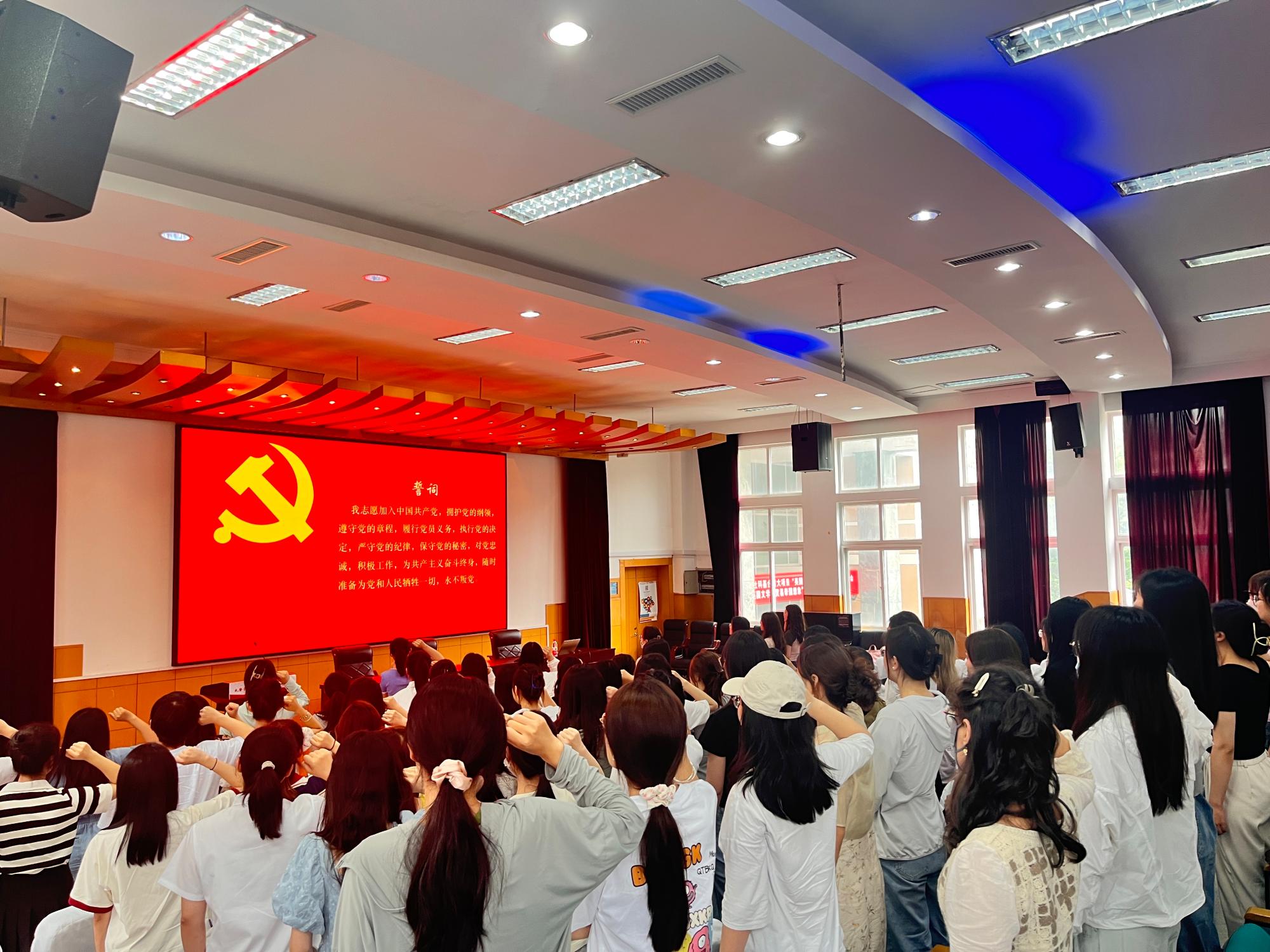 胡佳老师还代表学院党委、并作为纪委书记提出了三点希望:一是希望大家无论未来身在何时何地,始终不忘入党初心,将铮铮誓言坚守到底,让党员身份闪耀在世界各地、五洲四海闪耀荣光。二是希望大家无论从事何种职业,始终不忘自己作为新时代外语人的使命和担当,做到眼里有世界、心中是家国,力争人人都能在自己的本职岗位上讲好中国故事、传播好中国声音、推广好中国的民族品牌。三是希望大家无论身居何位,职务是高是低,都能始终保持清醒、公心、廉洁、自律。她结合自己的亲身经历,指出腐败就在你我身边,要求大家常怀律己之心,牢牢守住廉洁底线和纪律规矩红线;牢记“小胜凭智,大胜靠德”,正确权衡利益,保持内心通透。