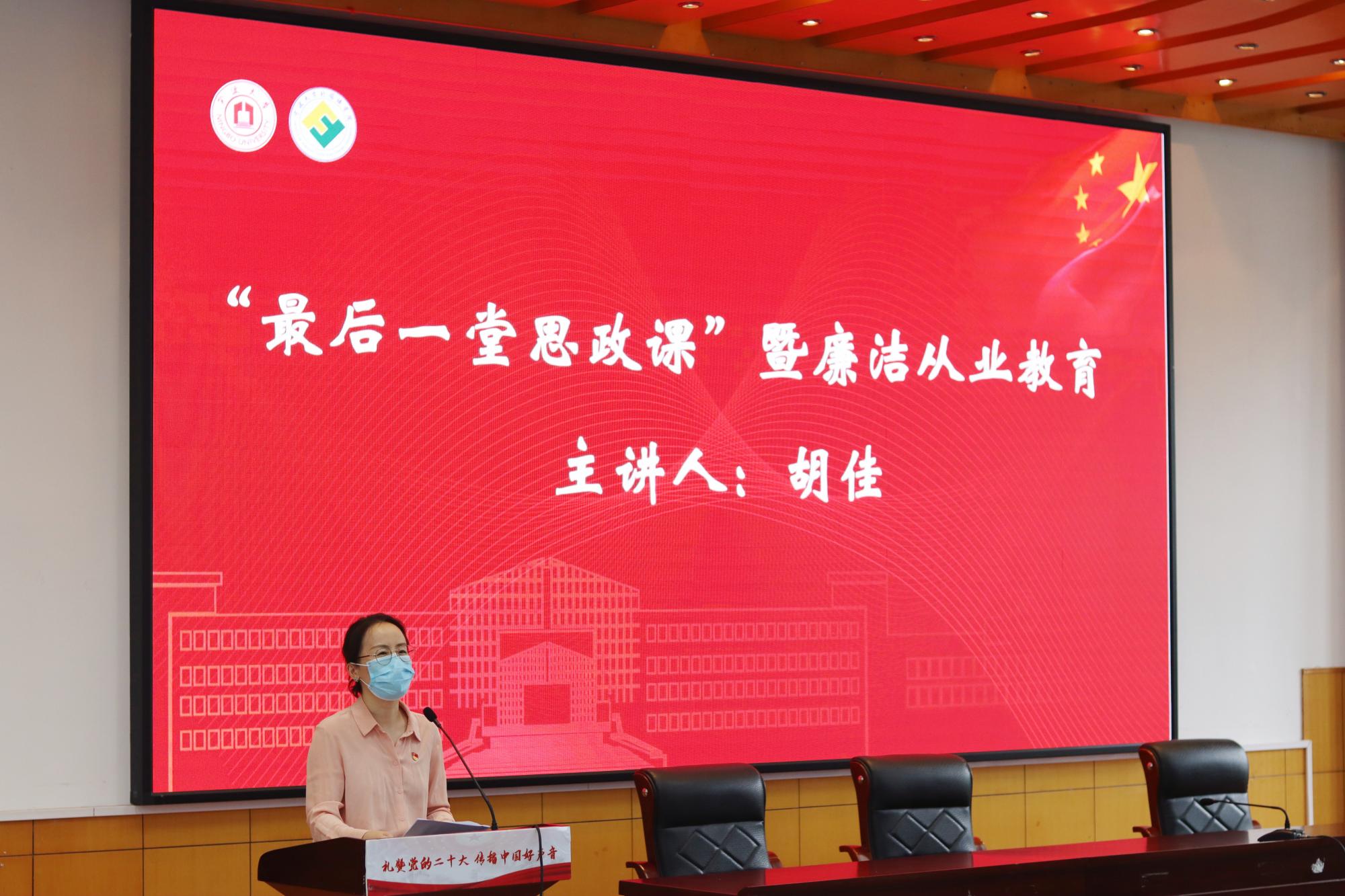 学院党委副书记兼纪委书记胡佳老师为毕业生党员上“最后一堂思政课”并进行廉洁从业教育。