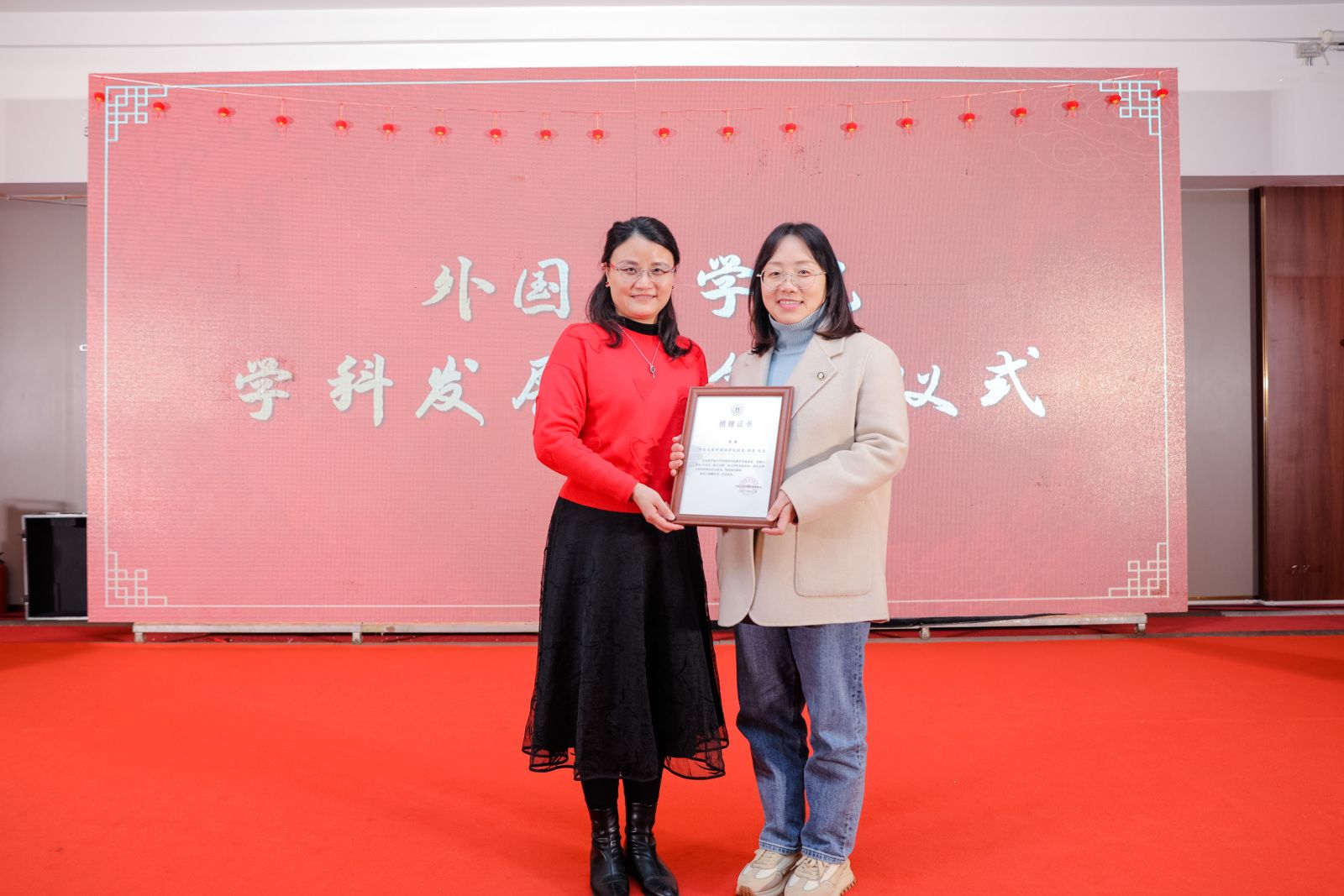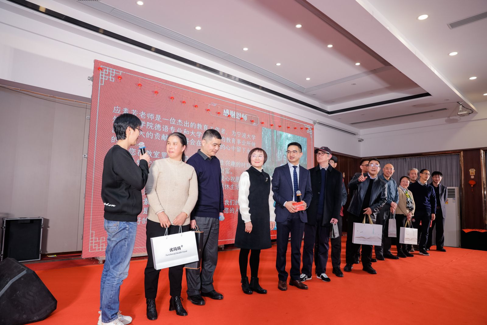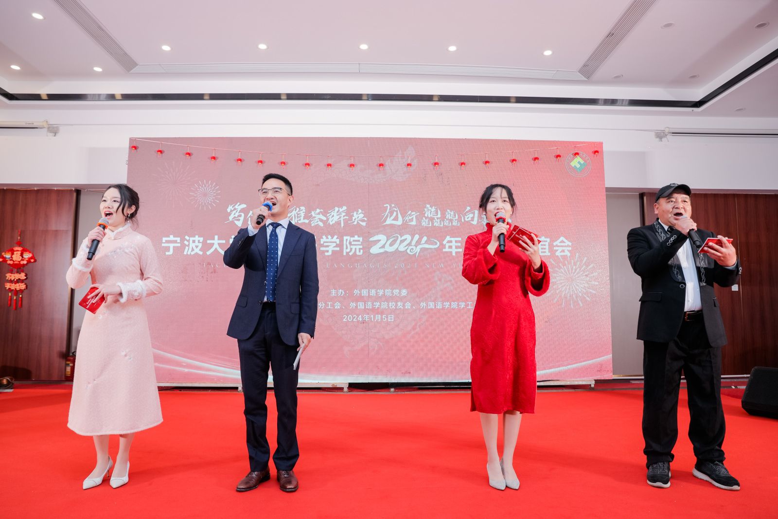 举行2024年迎春联谊会。学院第一任院长、学院校友理事会顾问赵伐老师,学院首任党委书记盛育冬老师受邀参加活动。学院领导、校友代表与全体教职工齐聚一堂,共迎新春、共叙情谊、共话发展。邢志祥、郝文婷、施嘉婷老师以及啪啪啦