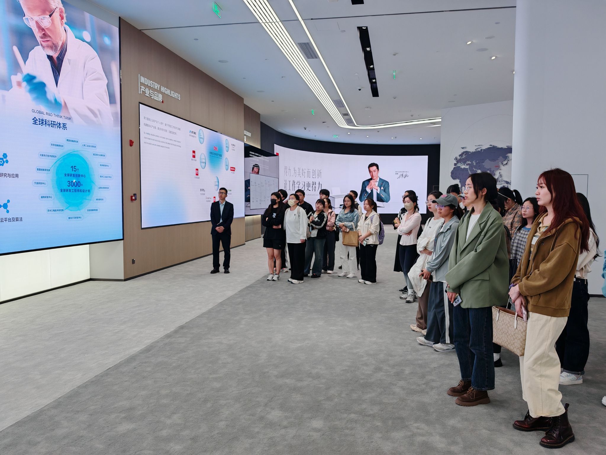 学院师生参观了得力集团宁海总部展示厅,了解了公司历史、经营理念、经营产业、主推产品特点、各类品牌等内容。在座谈分享会中,公司招聘经理介绍了品牌发展历程、品牌布局、科研创新、精益制造、营销布局、招聘需求和福利待遇;学院就业辅导员介绍了学院2024届学生基本情况和就业优势,寄语外院学子积极面对就业,把握机会;公司培训总监表示,得力集团是中国民营企业500强,是一家全球化布局的科技产业集团,非常欢迎宁大外语人才加入。学院英语系副主任对得力集团的热情接待表示感谢,对得力集团的发展壮大表示敬佩,并鼓励外院学子向优秀企业靠拢。