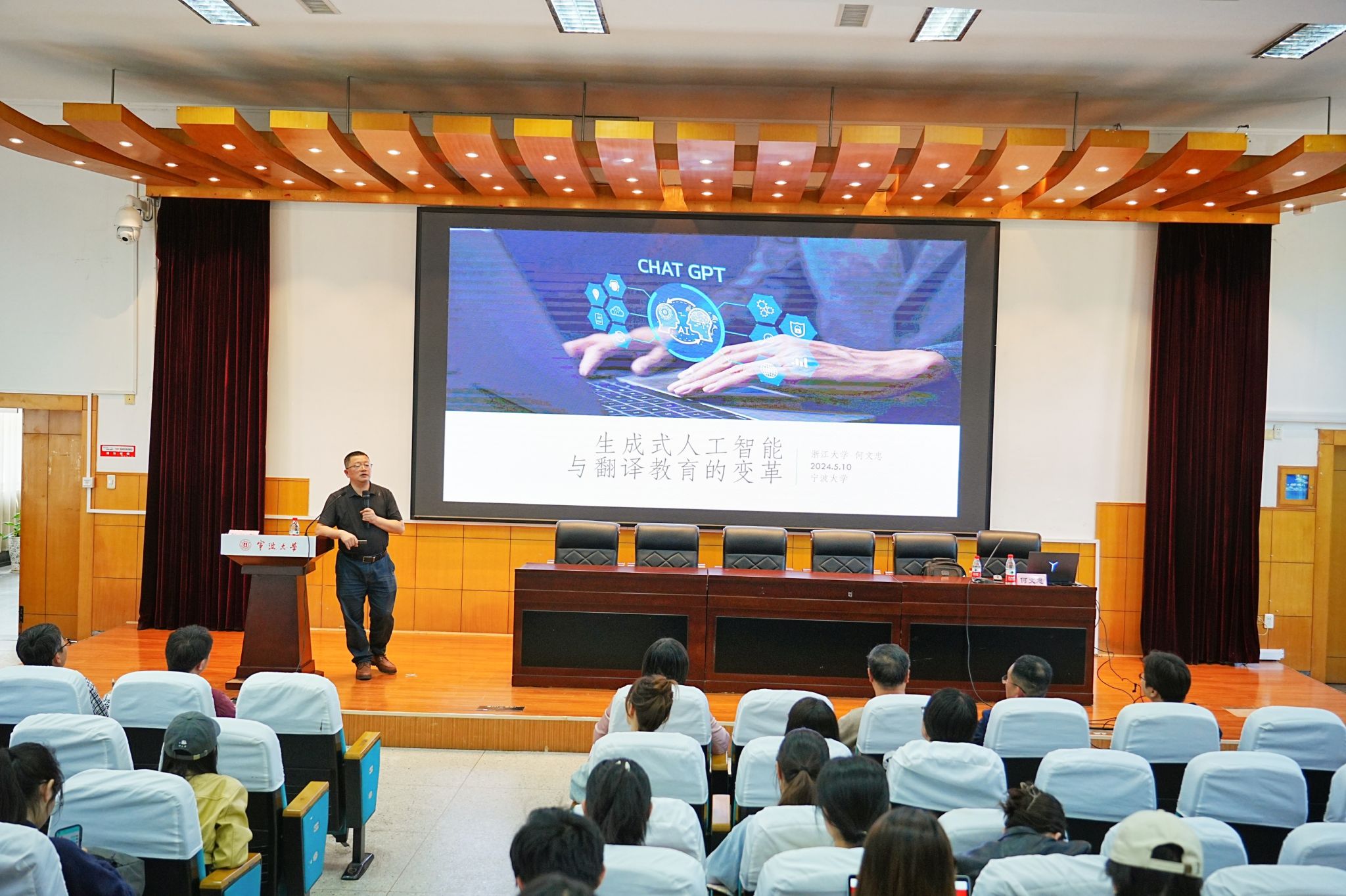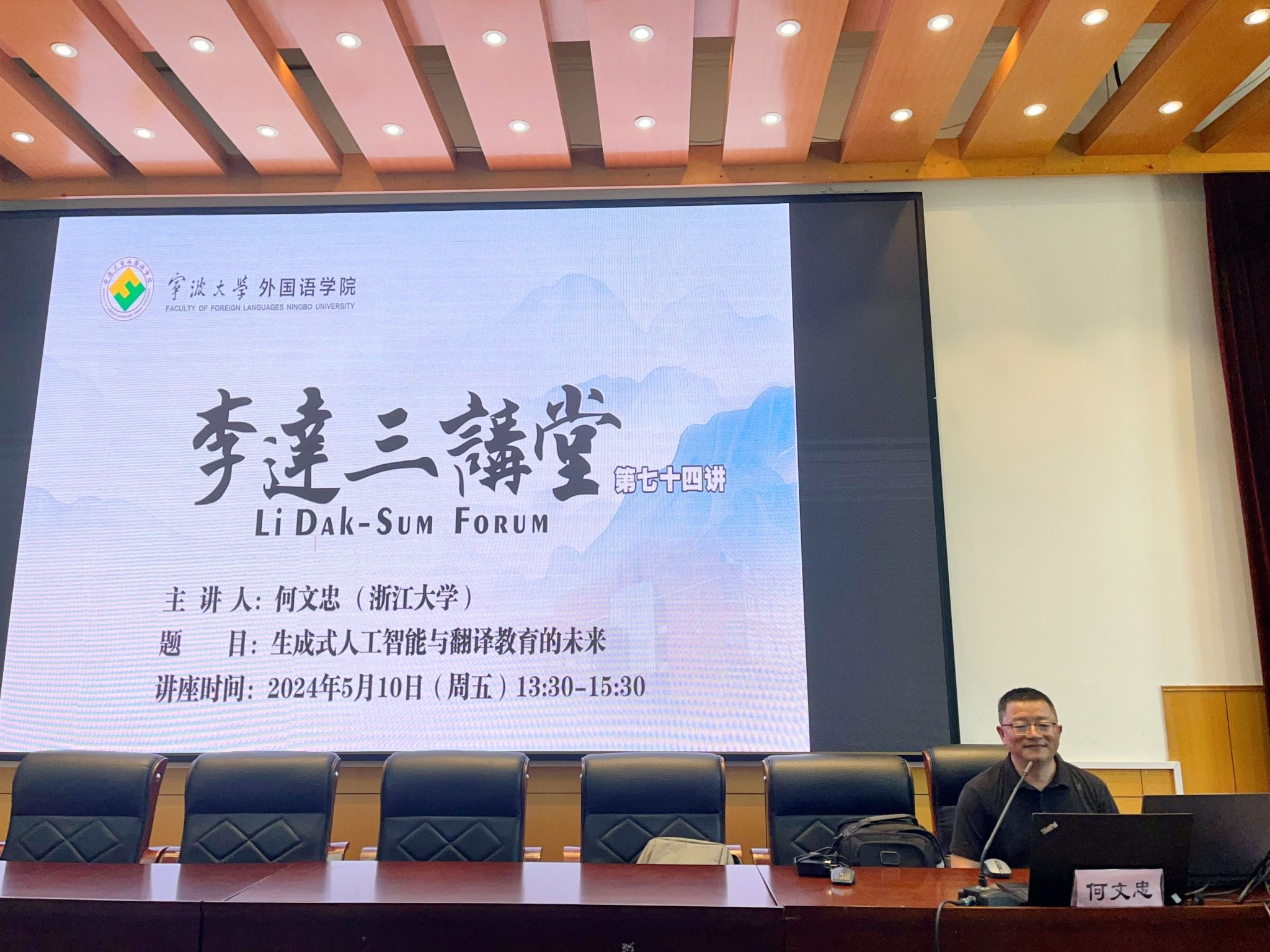 英文系何文忠副教授以“生成式人工智能与翻译教育的未来”为题,为啪啪啦