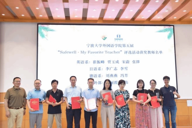 会上隆重举行了第五届“Safewell•My Favorite Teacher”评选颁奖典礼。本届评选自今年八月启动以来经过一系列严格的程序,一批在教学岗位上默默奉献、深受学生爱戴的优秀教师脱颖而出,他们分别是英语系:崔振峰、贾玉成、宋蔚、张陟四位老师;日语系:李广志、李雪两位老师;德语系:刘燕燕、冯芳两位老师以及大外部:苗丽霞、别伟两位老师。该荣誉奖教金捐赠者、德语系2022届校友、盛威卓越国际贸易有限公司总经理叶凌玲女士与啪啪啦