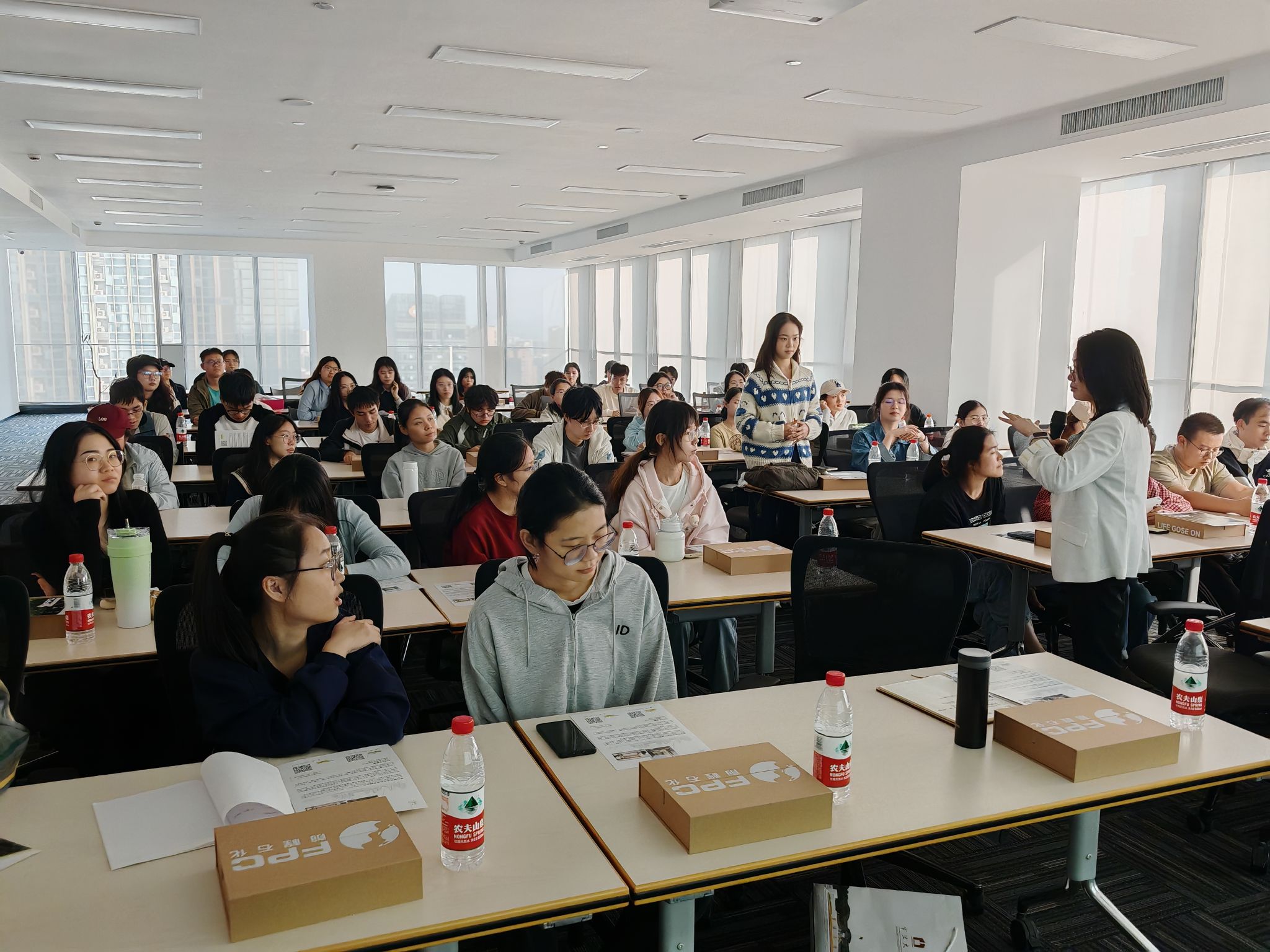 活动伊始,林亭亭向师生全面展示了公司的发展历程、主营业务和员工风采。她详细介绍了公司的基本情况、经营状况以及当前的人才需求,为在场的学生们提供了宝贵的行业洞见和就业前景分析。