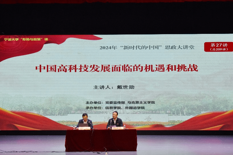 10月30日,副校长戴世勋在林杏琴会堂以“中国高科技发展面临的机遇和挑战”为主题,为啪啪啦