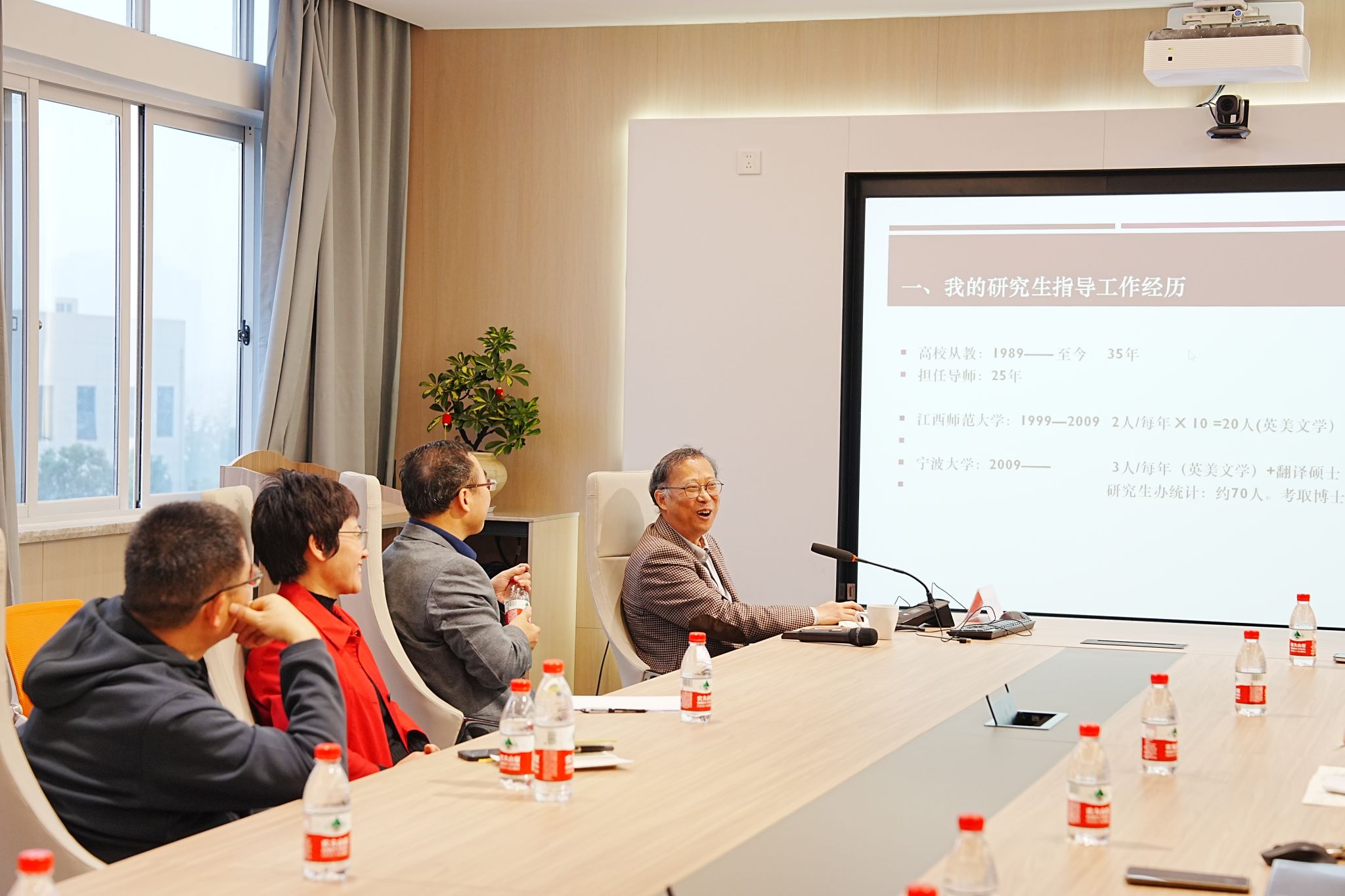 在李达三外语楼218室成功举办了题为“情感赋能与外语教学”的研究生导师培训专题讲座。本次讲座由二级教授、博士、“甬江学者”特聘教授王松林主讲,贺莺教授主持,啪啪啦