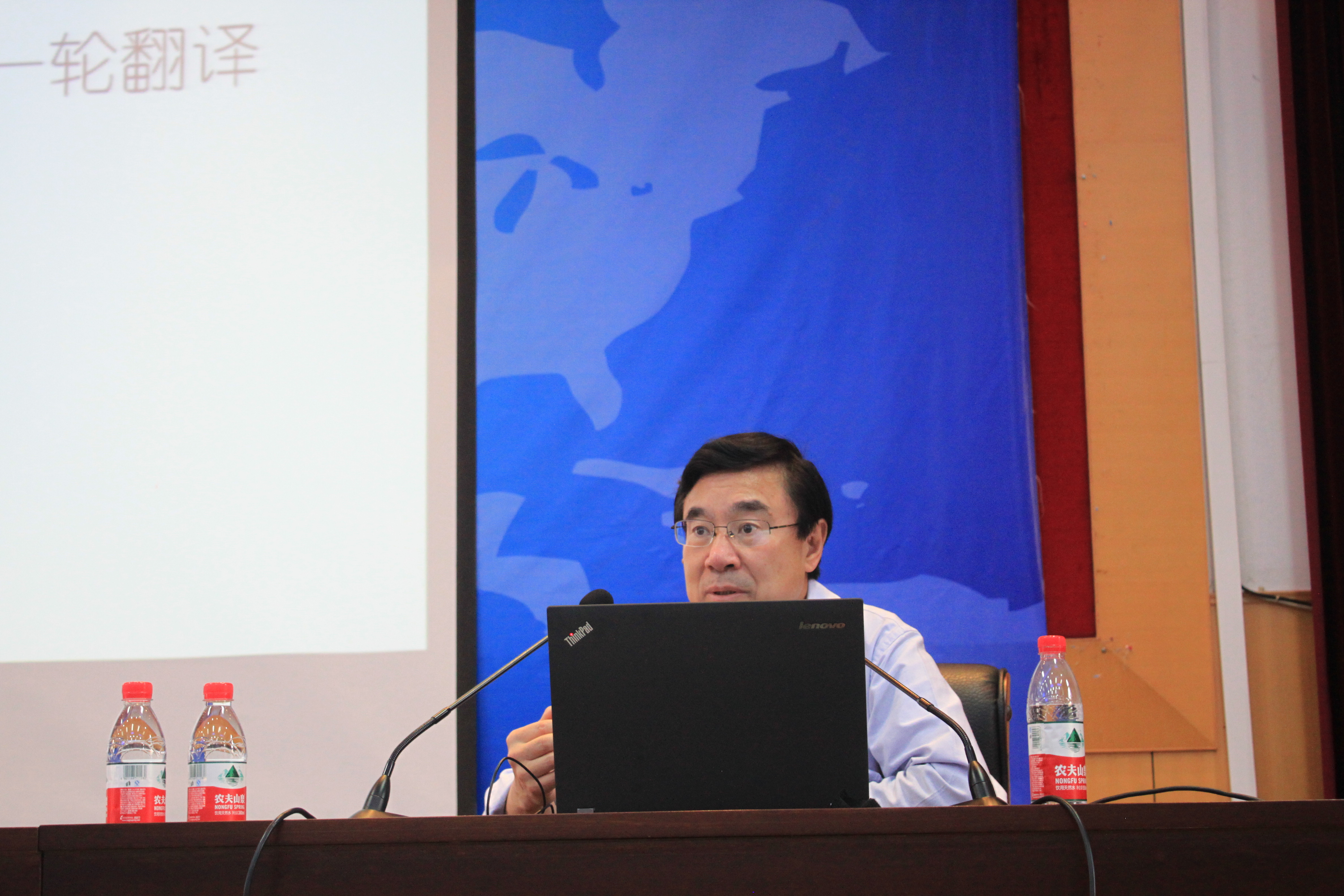 校庆三十周年“名家讲坛”,为全院师生带来“为什么翻译对中国越来越重要”的专题演讲,讲坛由屠国元院长主持。黄友义教授为中国外文局前副局长兼外文出版社总编辑、现任中国翻译协会常务副会长、全国MTI教指委主任委员、国务院学位委员会委员、《中国翻译》杂志主编。啪啪啦